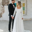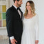 Are you looking for a long-sleeved dress made of a lightweight fabric? The designer recognized this desire of many brides and created this enchanting gown. BG23-39 is crafted from two different materials that combine to create an elegant yet light and airy look. The bodice is made of fine crepe and its cut ensures a perfect fit. The round neckline and long sleeves lend it a classic style. The flowing chiffon skirt is incredibly light and gracefully drapes the legs. Thanks to the carefully selected materials, this dress offers exceptional comfort, allowing you to move freely and comfortably all day long. Beautiful details include the fabric-covered decorative buttons on the back and the stunning train. In this dress, you'll be the center of attention on your big day!
