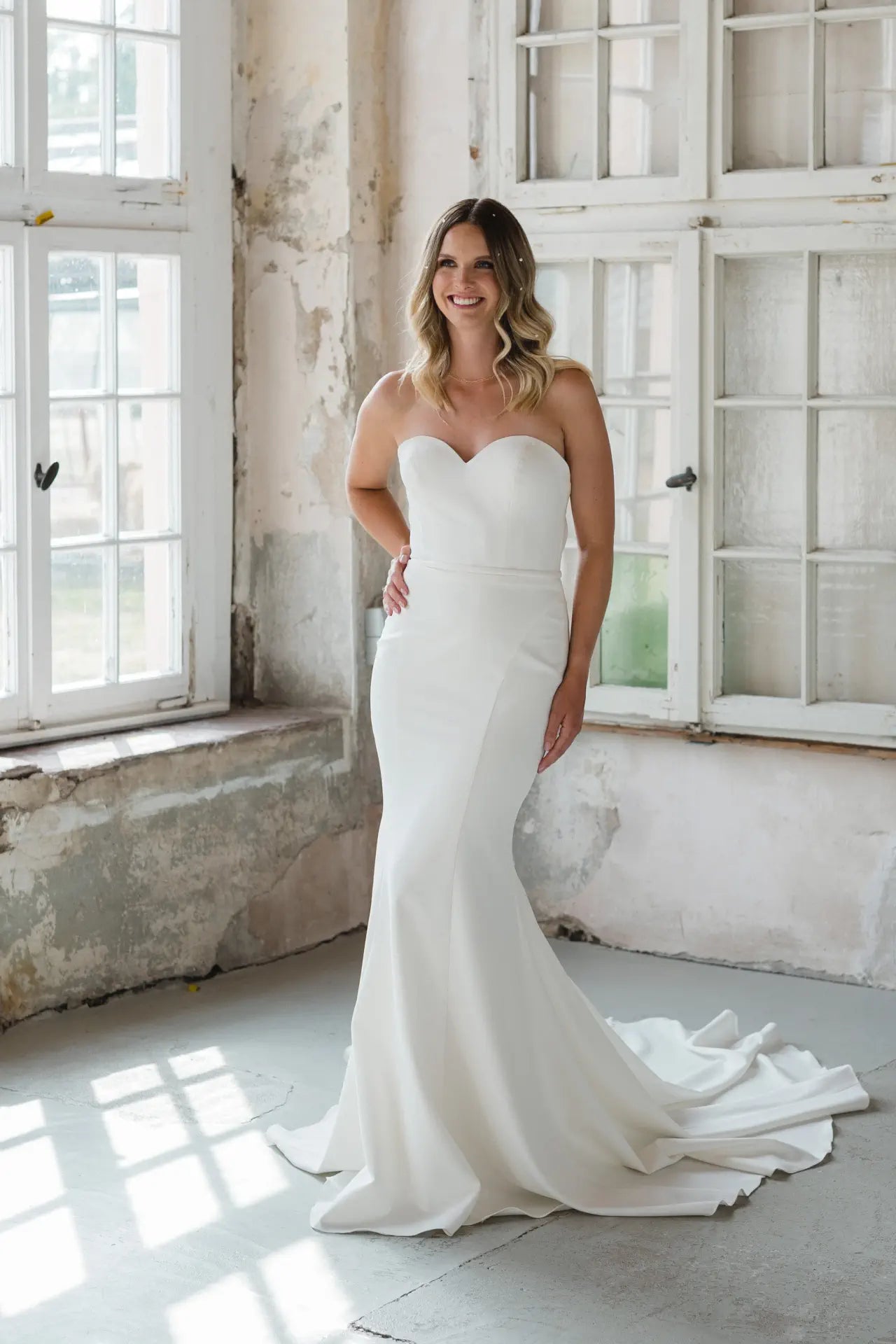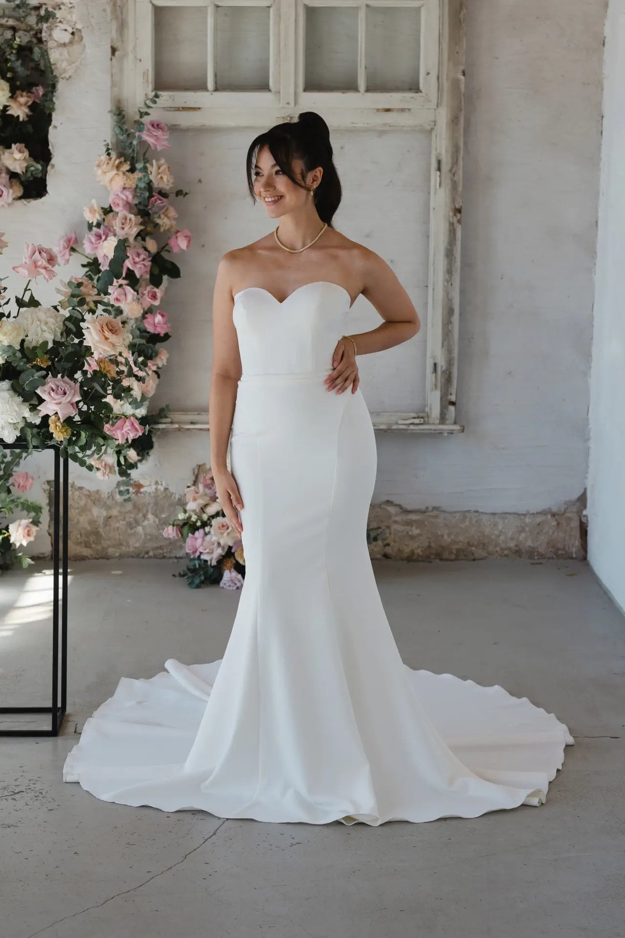 Ben je op zoek naar een jurk die je twee keer een verbluffende entree garandeert? Dan is BG23-21 perfect voor jou! Het bijzondere aan deze droomjurk is de veelzijdigheid, dankzij de toevoeging van een hooggesloten kanten body. Dit geeft de jurk een romantische en delicate touch. Zonder body wordt deze trouwjurk een eenvoudige en elegante droom, betoverend met de exclusieve Mikado- en crêpestoffen. De vrouwelijke sweetheart-halslijn en prinsessennaden accentueren de rondingen van de bruid prachtig en creëren een zeer vrouwelijk en zacht silhouet. De stof van de jurk omarmt je rondingen zachtjes, waardoor je vrouwelijkheid straalt met een verfijnde stijl. De verfijnde uitsparing op de rug is het hoogtepunt van deze droomjurk. De verleidelijke look wordt gecreëerd door de diepe halslijn en gecompleteerd door de satijnen tailleriem. Deze Bridonista droomjurk laat perfect de kenmerkende stijl van de ontwerpster zien. Overal waar je kijkt, vind je betoverende details, zoals de knoopsluiting die helemaal doorloopt tot aan het einde van de sleep. Geïntrigeerd? Maak dan een afspraak voor een bruidsjurk bij een Bridonista-winkel en schitter in deze droomjurk.