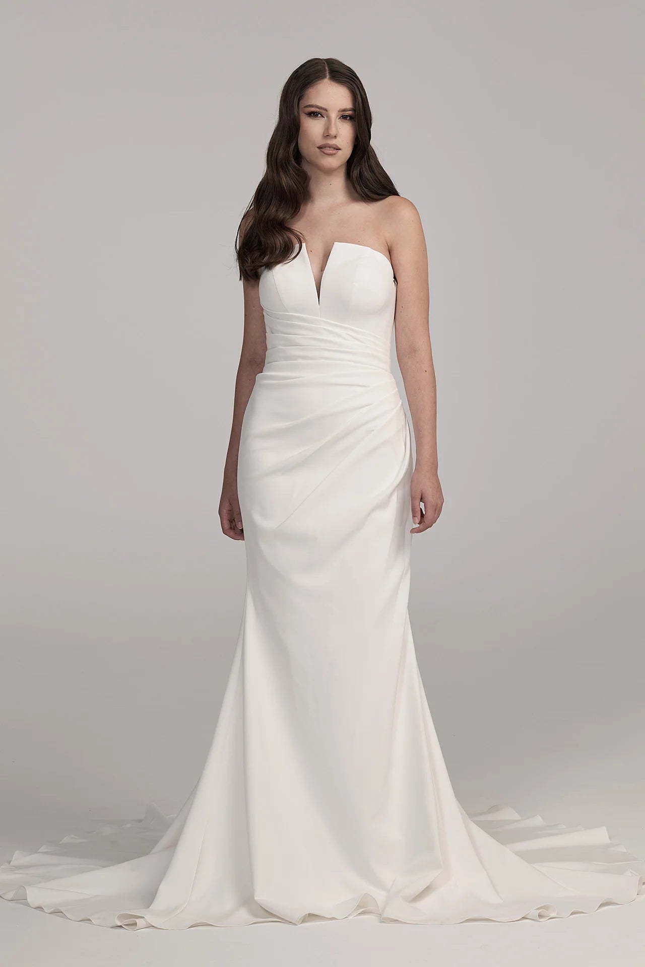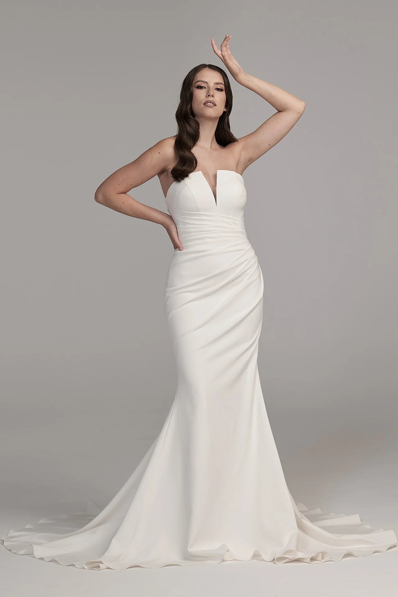 Met de Bridonista BG24-02 zie je eruit als een sprookjesbruid! Deze elegante trouwjurk heeft een sweetheart-halslijn, off-shoulder mouwen en een middellange sleep. De fit-and-flare stijl combineert moderne glamour met verfijnde illusoire tule, crêpestof, ruches in het lijfje en de rok, en een klassieke, eenvoudige lange knoopsluiting. De BG24-02 zal je de rest van je leven gelukkig maken! Deze tijdloze jurk brengt romantiek tot leven. Delicate, gedetailleerde versieringen en een slank, flatterend silhouet zorgen ervoor dat de grote dag van elke bruid een ware klassieker wordt. Maak je klaar om "Ja" te zeggen in de Bridonista BG24-02!