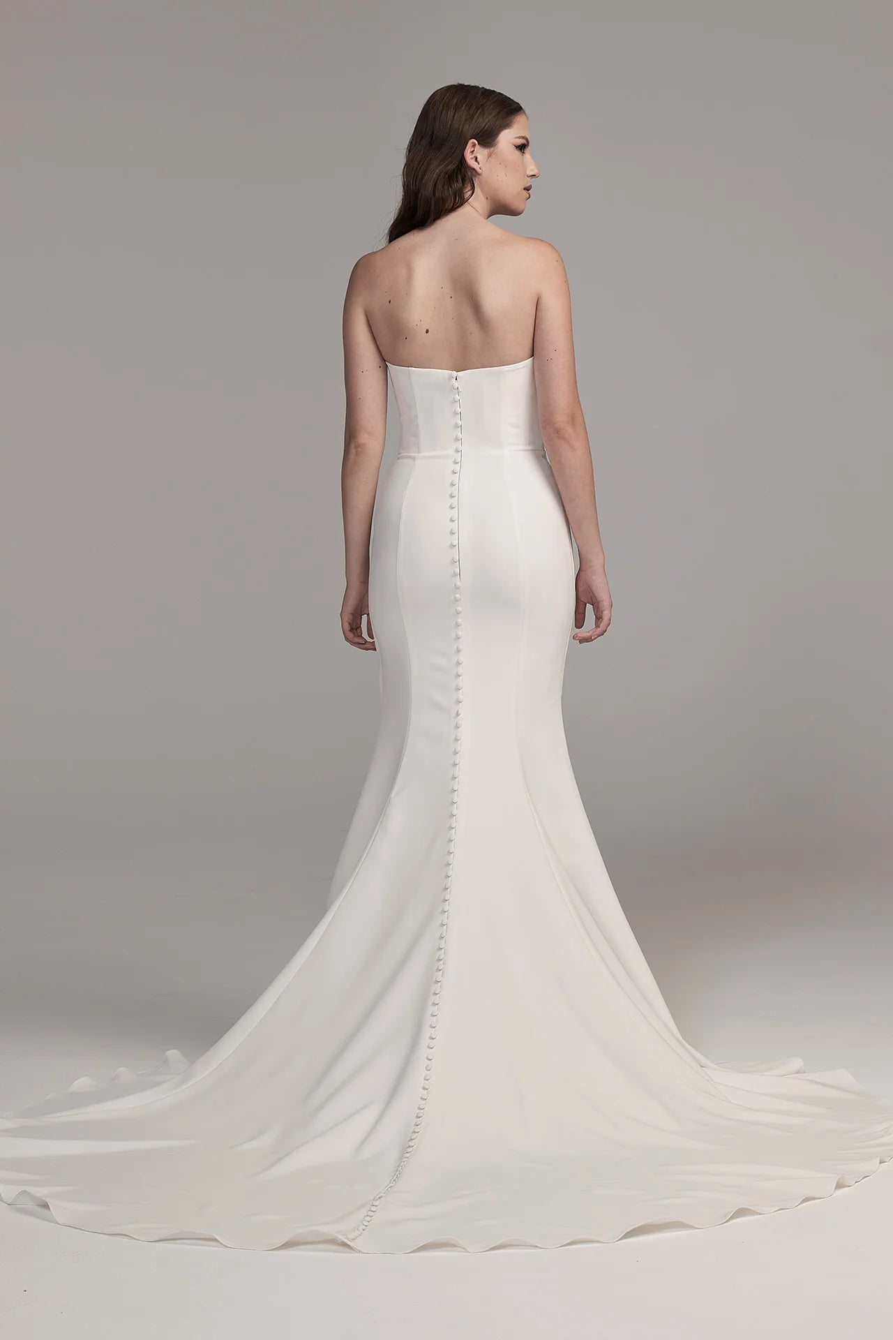 Korset: Ivoorkleurige, dichte crêpe/ivoorkleurige tule inzet bij de halslijn, ivoorkleurige voering; - Rok: Ivoorkleurige, dichte crêpe, ivoorkleurige voering. Voor dit ontwerp zijn uitsluitend ivoorkleurige materialen gebruikt.