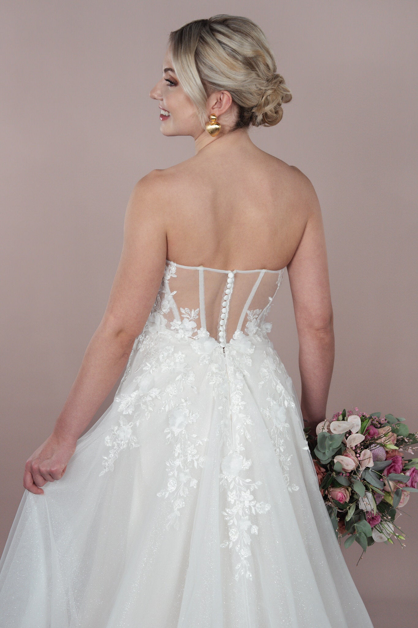 De Bridonista C25-A02 combineert alle elementen die een moderne bruid zich wenst voor haar trouwdag: van speelse elegantie tot romantische charme. Het is de ideale keuze voor bruiloften in elke setting, of het nu een elegante kerk, een dromerige receptie in de buitenlucht of een stijlvolle balzaal is.