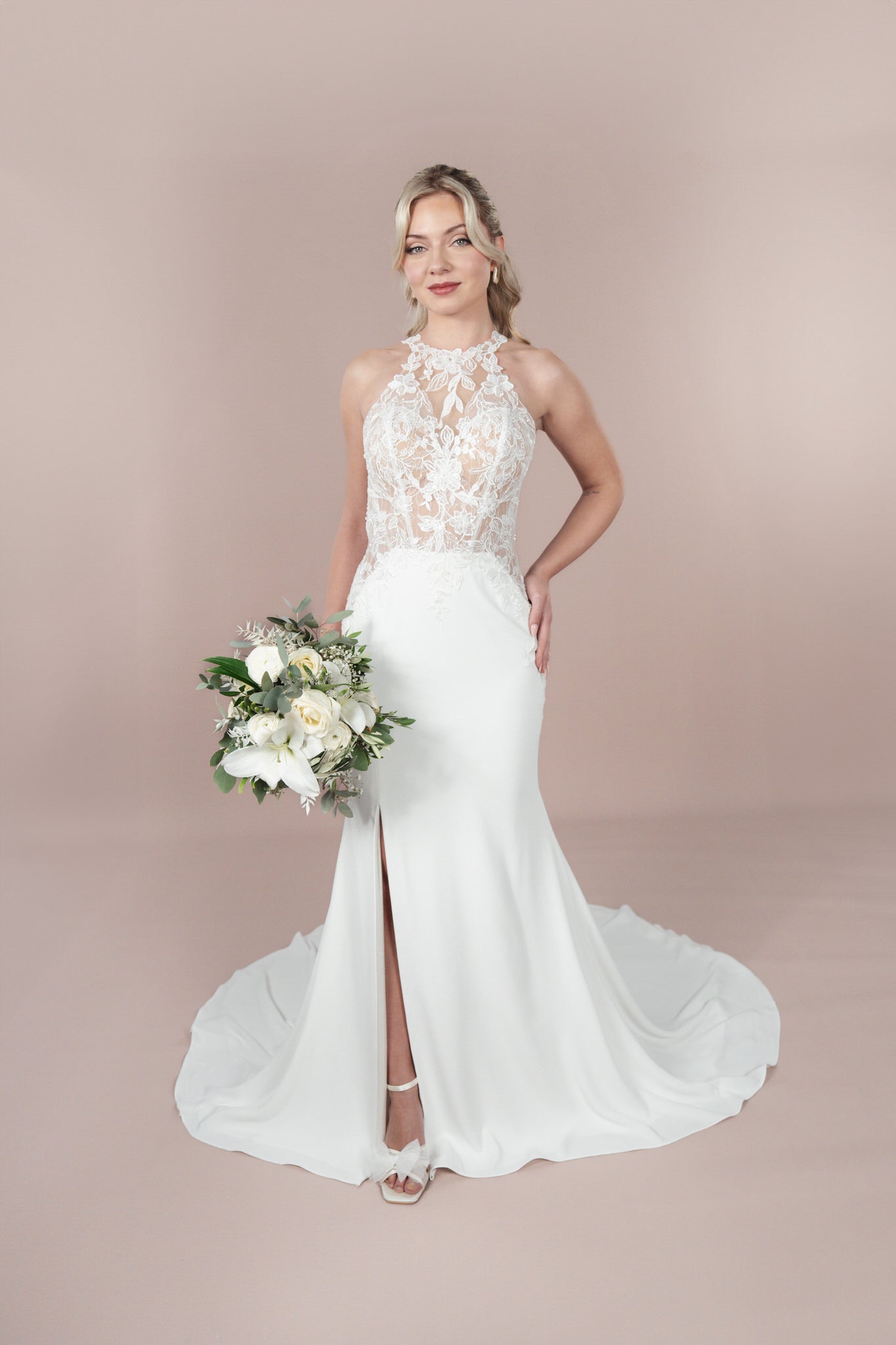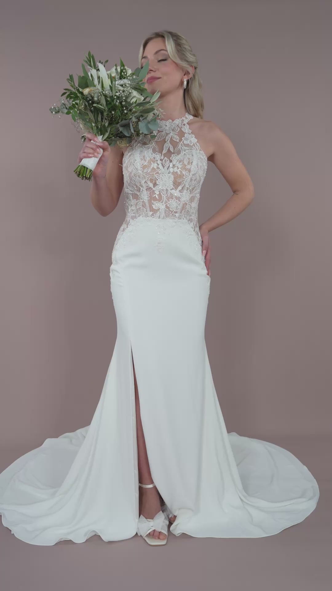 De Bridonista C25-F04 trouwjurk combineert een spannende mix van tijdloze elegantie en moderne verfijning, perfect voor bruiden die een sexy statement willen maken op hun trouwdag. Met het betoverende ontwerp en de unieke details is deze jurk een echte showstopper, waardoor elke bruid zich het middelpunt van de belangstelling voelt op haar trouwdag.