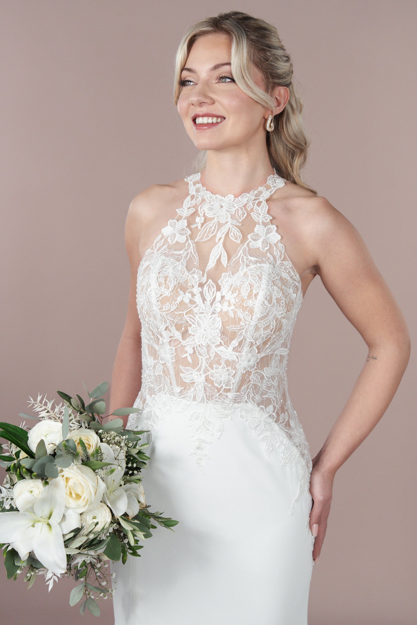 Bezoek een van onze stijlvolle boetieks om deze prachtige jurk van dichtbij te ervaren en uw droom van de perfecte bruiloft te verwezenlijken. Laat u betoveren door de gratie en luxueuze stijl van de Bridonista C25-F04 en geniet van elk onvergetelijk moment van uw speciale dag.