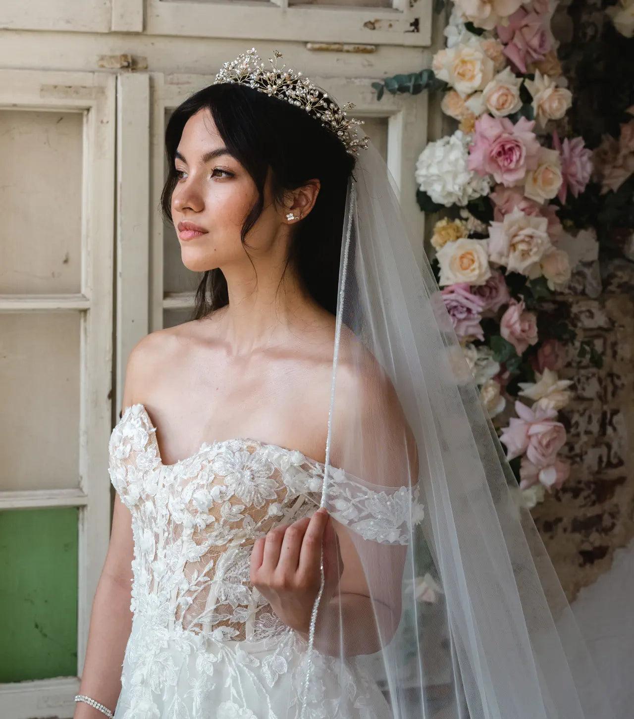 Um die Aussage dieses Traumkleides zu unterstreichen, hat Bridonista es sich nicht nehmen lassen, einen passenden Kathedralschleier zu entwerfen. Achtung liebe Braut, du wirst dich Hals über Kopf verlieben und dieses Traumkleid mit dem passenden Traumschleier nicht mehr ausziehen wollen!