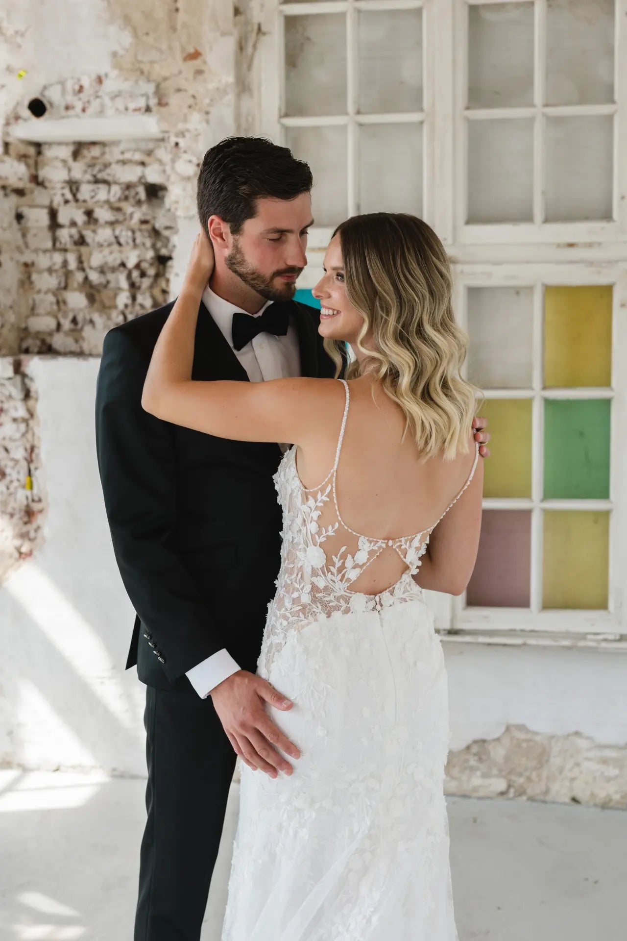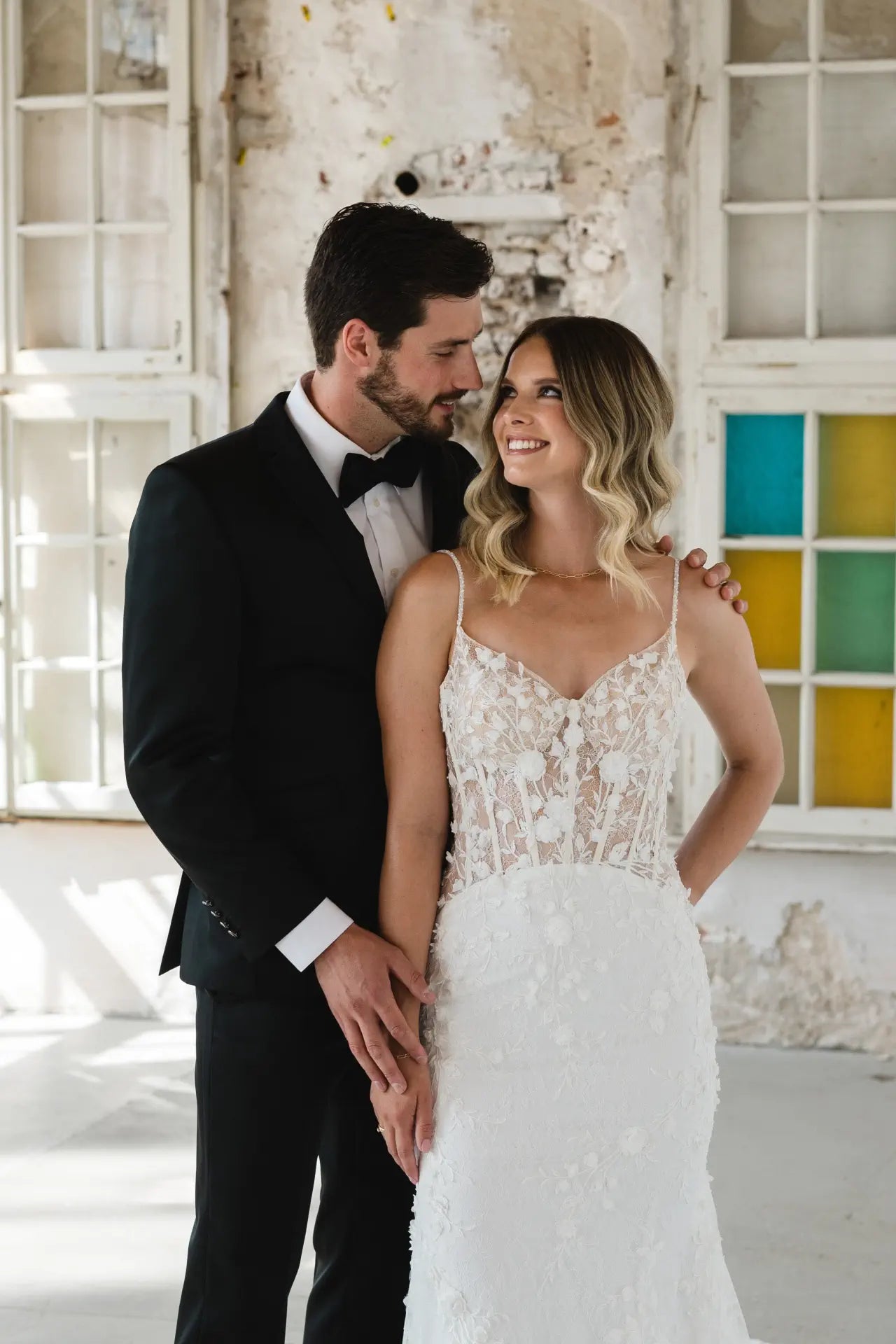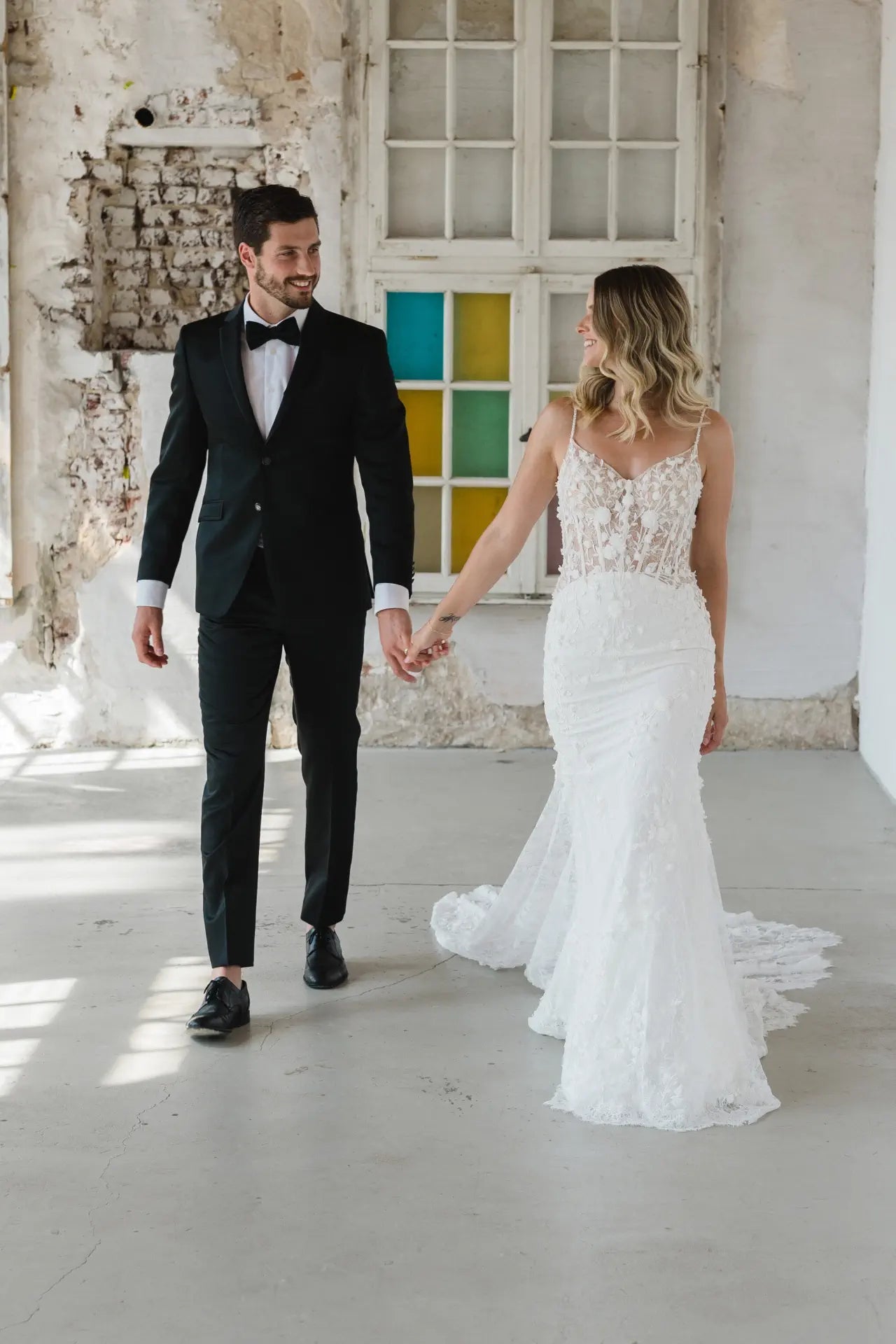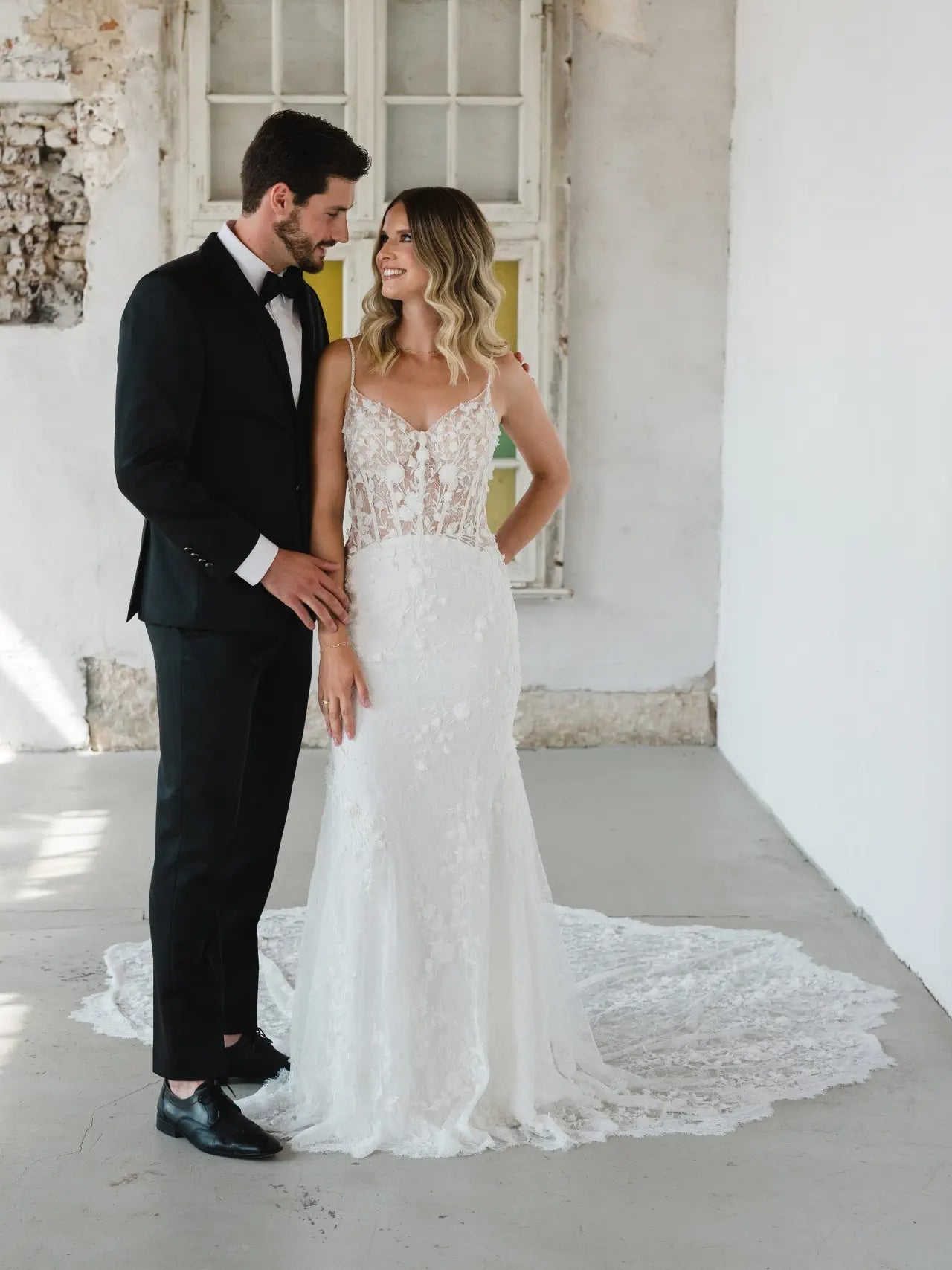 3D-Elemente liegen im Trend, also hat unsere Designerin natürlich einen bezaubernden Fit-and-Flare-Schnitt mit Blumen entworfen. Das Hochzeitskleid BG23-17 ist eine feine Komposition aus feiner französischer Chantilly-Spitze und organisch platzierten 3D-Blumen. Die Spaghetti-Träger und die Streublumen sind von Hand mit Perlen bestickt, die für einen edlen und doch dezenten Glanz sorgen. Die Corsage ist im Lingerie-Look geschneidert und bietet nicht nur Komfort und Sicherheit, sondern verleiht BG23-17 auch eine architektonische Raffinesse. Wir lieben die Komposition aus Struktur, seitlichen Ausschnitten, femininen Körperbetonungen und romantischen 3D-Blumen. Ein besonderer Blickfang ist der tiefe Schlüssellochrücken und die muschelförmige Schleppe, die für ein einzigartiges Design sorgen. Mach dich bereit, wunderschön und selbstbewusst auf deinen zukünftigen Ehemann zuzugehen; buche jetzt einen Termin bei deinem Bridonista-Händler und verliebe dich Hals über Kopf in diesen Brautlook.