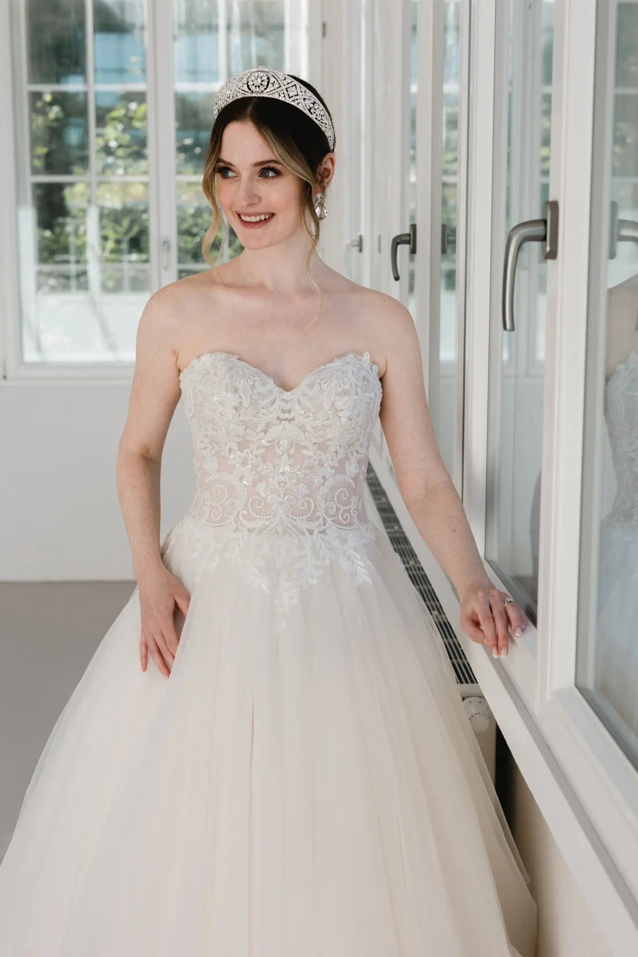 Dieses Hochzeitskleid ist mit nude/ oder elfenbeinfarbenem Tüll in der Corsage und mit einer farbigen Tüllschicht im Rock in Elfenbein/ Rose/ Mandel/ Champagner erhältlich. Das Material des Futters ist nur in Ivory erhältlich. Bridonista steht für Flexibilität und Individualität, deshalb ist dieser Stil wahlweise mit einer Lage Glitzertüll oder ohne erhältlich. Für alle Klassik-Liebhaberinnen können die großen Brautkleider auch mit Reißverschluss oder traditioneller Schnürung bestellt werden, frag deinen Bridonista-Händler nach weiteren Informationen.
