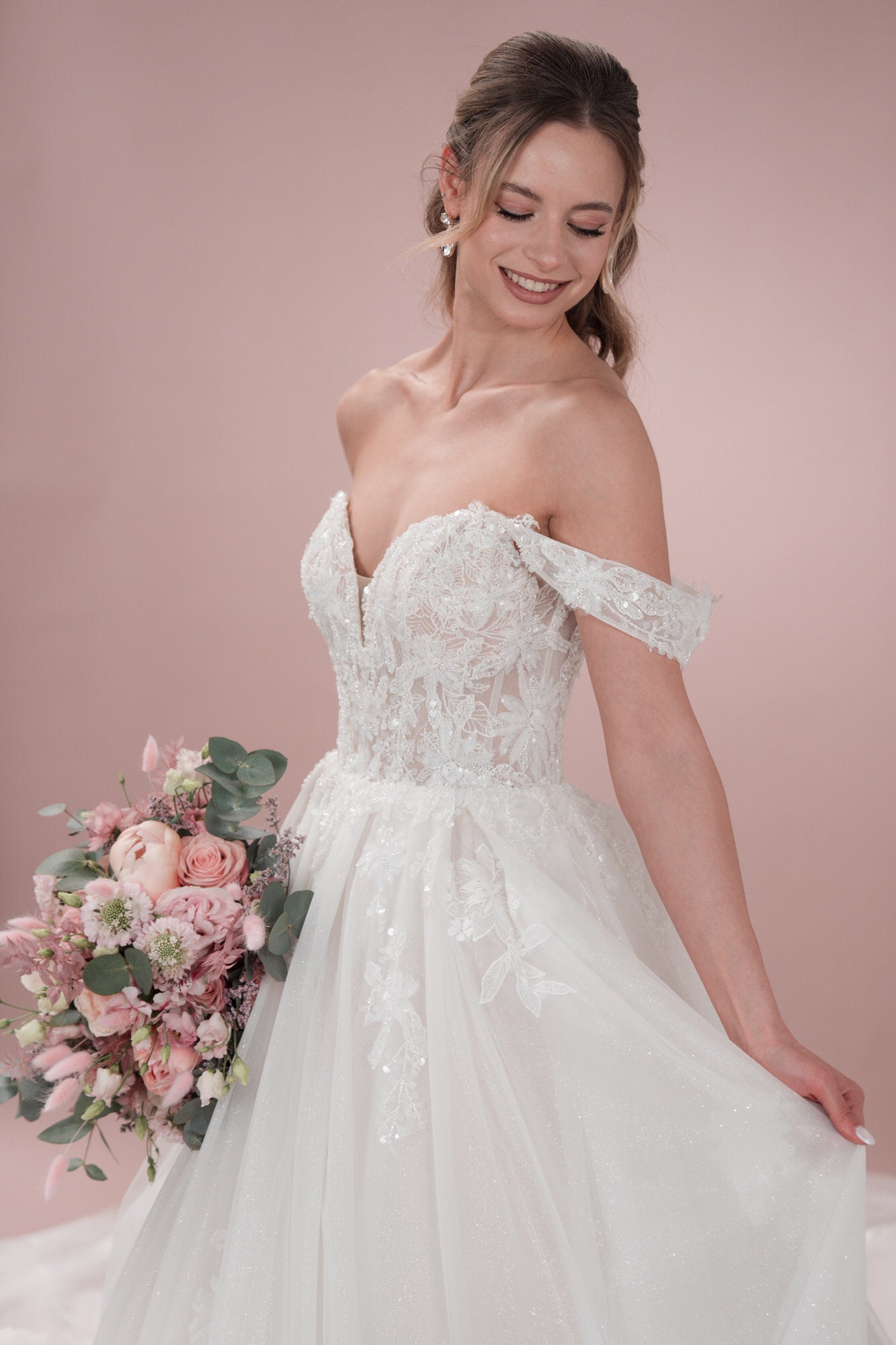 Bist du auf der Suche nach einem Hochzeitskleid, das dafür sorgt, dass du wie eine Prinzessin aussiehst und dich auch so fühlst? Dann ist unser Bridonista C24-15 genau das Richtige für dich! Dieses wunderschöne Hochzeitskleid vereint Eleganz und Romantik perfekt.