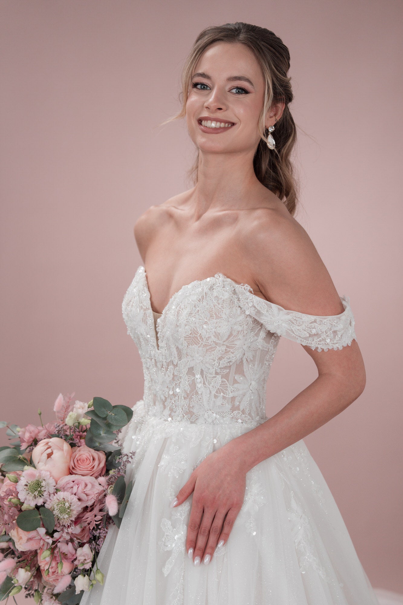 Mit unserem Bridonista C24-15 wirst du an deinem großen Tag glänzen wie nie zuvor. Zeig dich von deiner romantischen Seite und lass dich von diesem bezaubernden Hochzeitskleid verzaubern. Sei die Prinzessin, von der du immer geträumt hast!