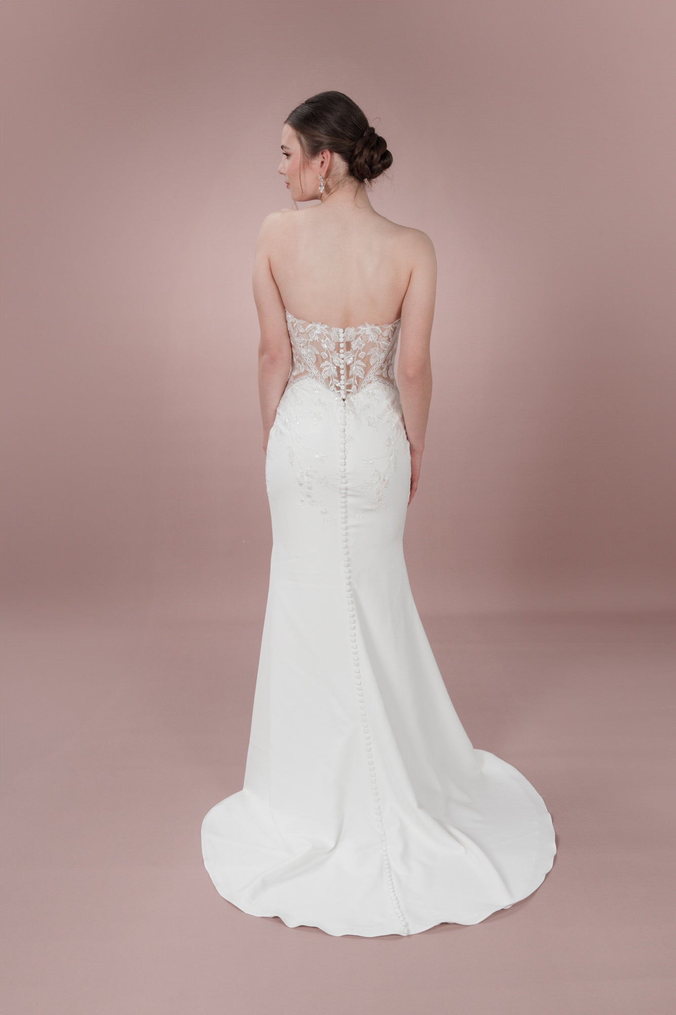 Mit einer kurzen Schleppe präsentiert das Bridonista Hochzeitskleid genau den richtigen Hauch von Eleganz. Du wirst dich wie eine Prinzessin fühlen, wenn du das Traualtar entlang schreitest.