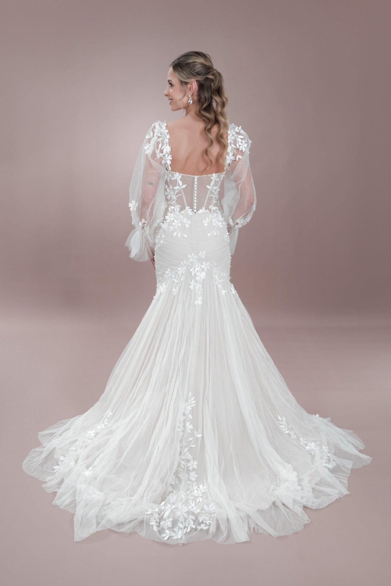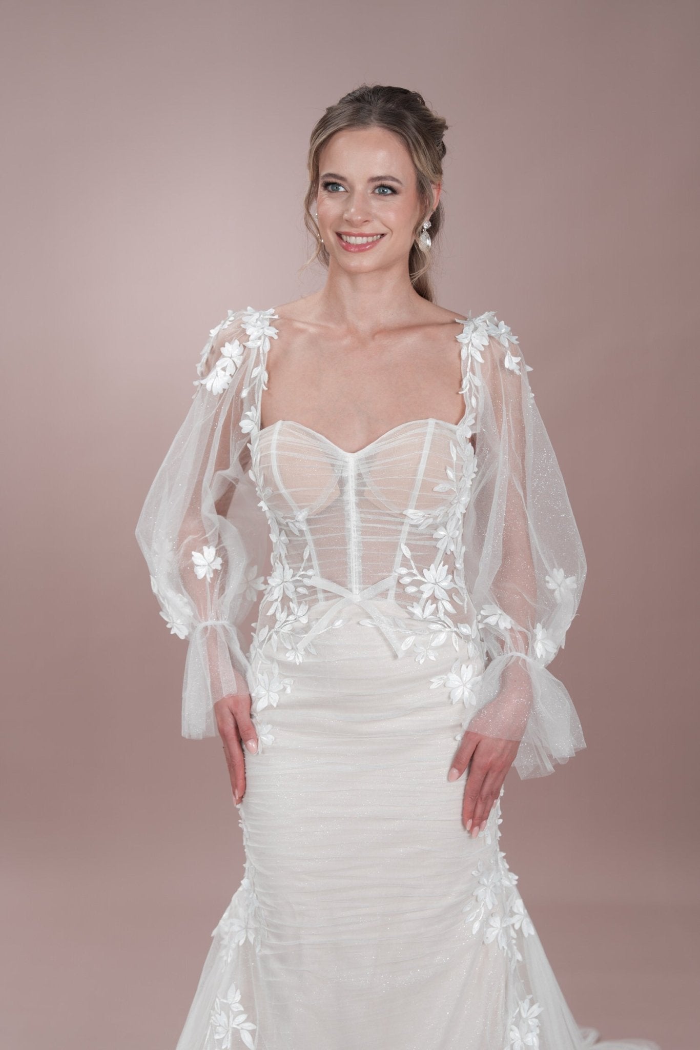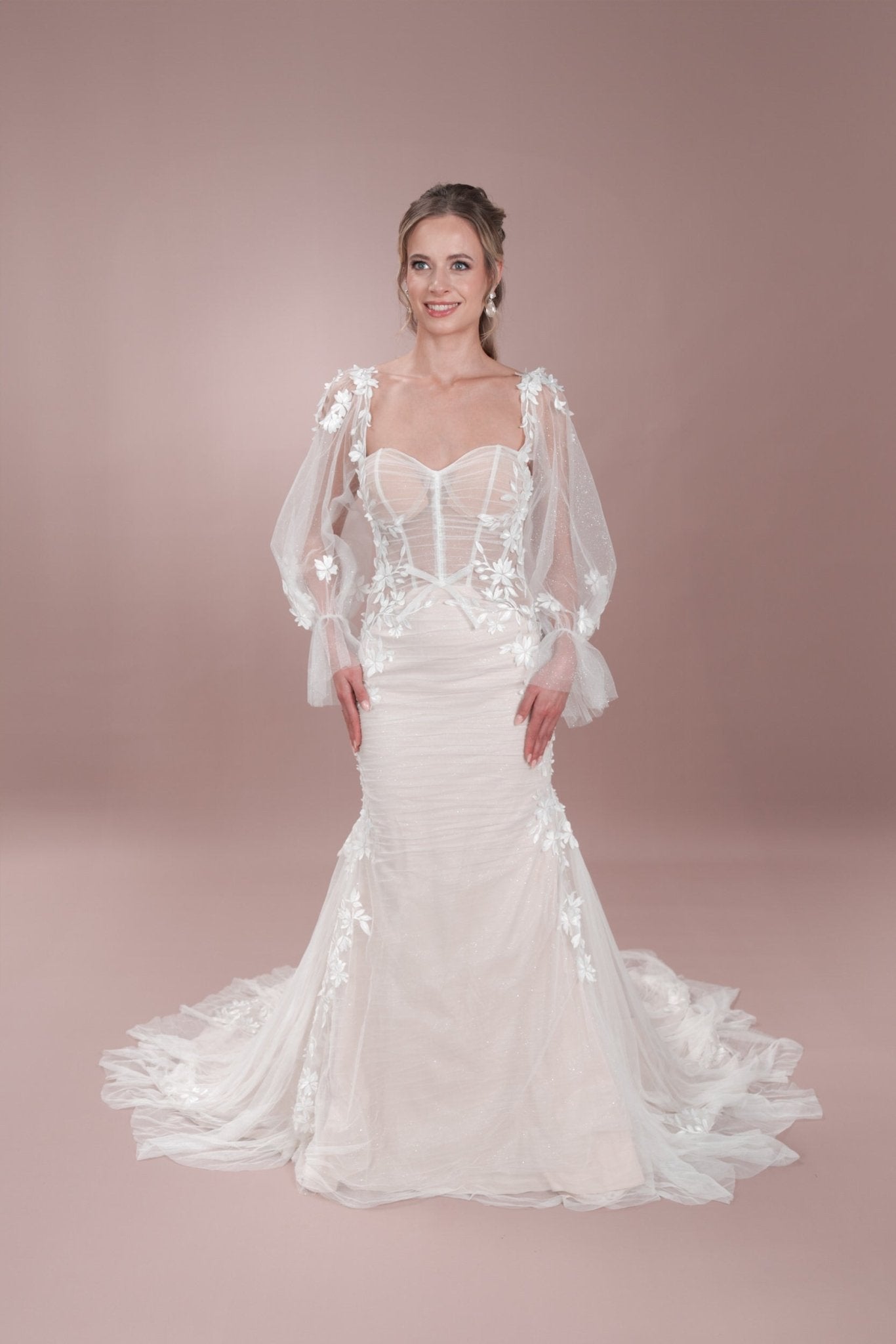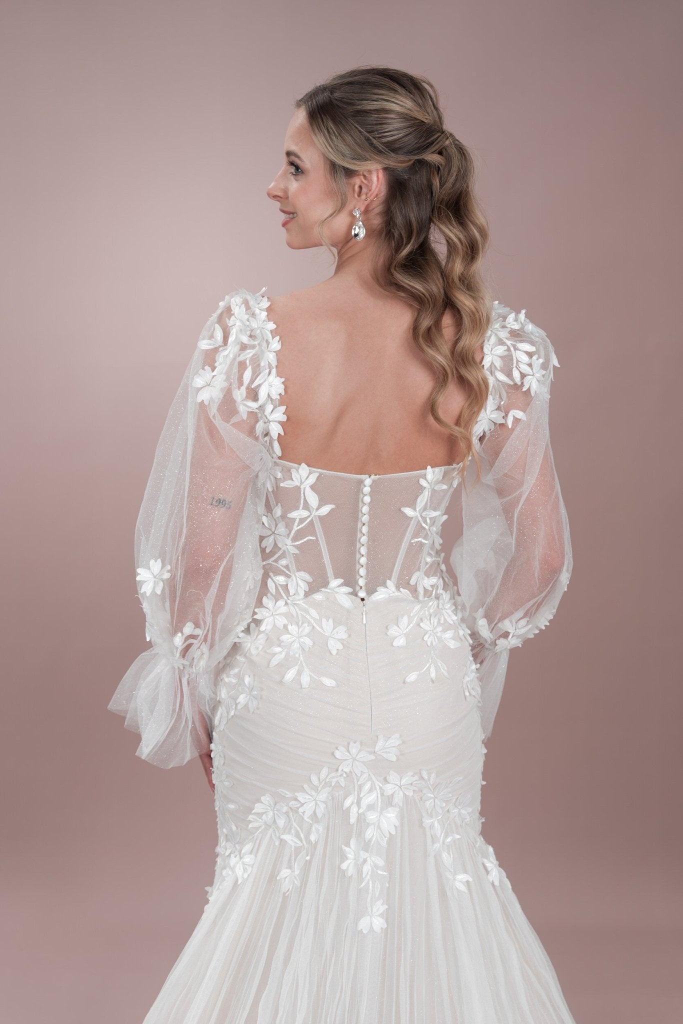 Entfessle deine innere Bridonista mit unserem Brautkleid C24-33! Dieses sexyness fit and flare Kleid hat eine mittellange Schleppe und wunderschöne Details aus Spitze. Der klassische Charme des Kleides wird durch 3D-Verzierungen und Glitzerakzente aufgewertet. Mit einem Herzchen-Ausschnitt, abnehmbaren Ärmeln und verspielten seitlichen Cutouts wirst du dich an deinem besonderen Tag wie eine Königin fühlen. "Sag ja zu dem Kleid, das dafür sorgt, dass du dich wie eine Braut fühlst und noch mehr! Mit seiner mittellangen Schleppe, den Spitzendetails, den 3D-Verzierungen und den Glitzerakzenten ist dieses Kleid die perfekte Mischung aus klassisch und modern. Außerdem hat es einen Herzchen-Ausschnitt, abnehmbare Ärmel und kokette Cutouts an den Seiten - müssen wir noch mehr sagen? Mach dich bereit, die Blicke auf dich zu ziehen und deine innere Bridonista zu entfesseln!"