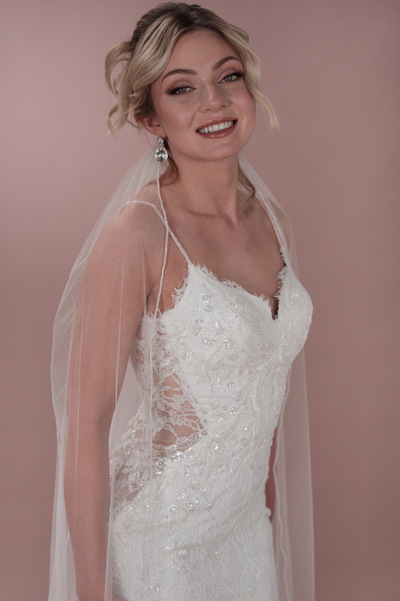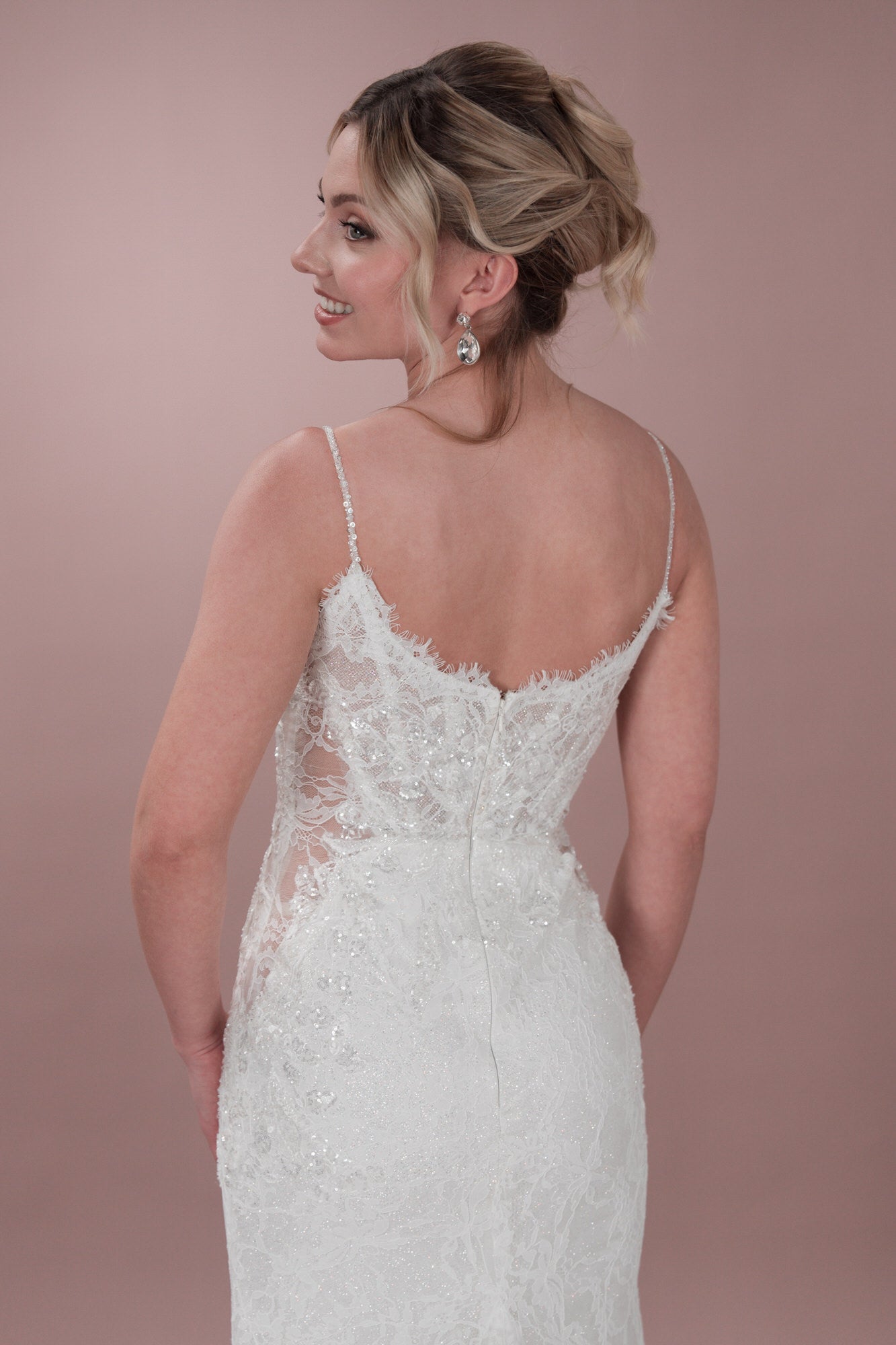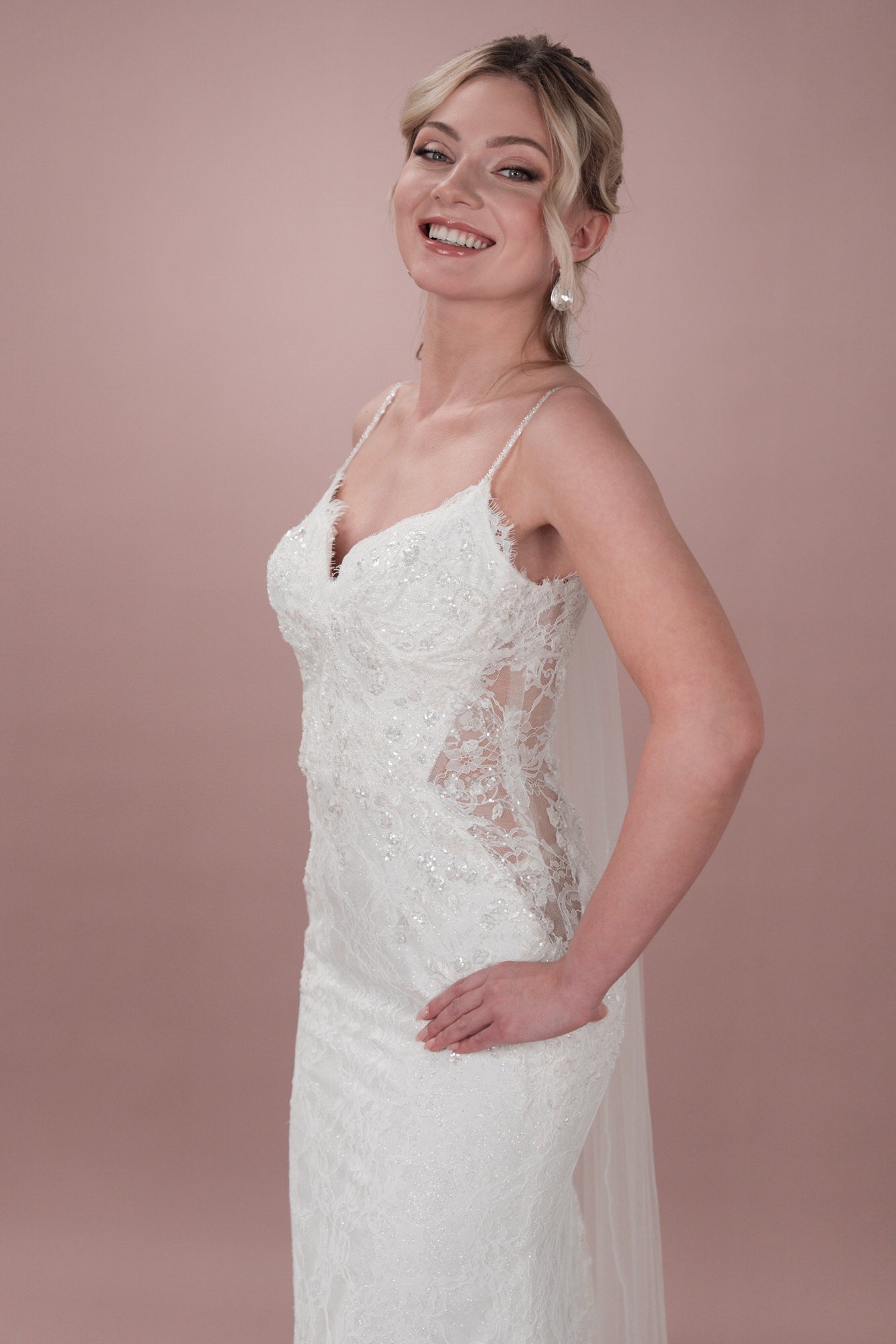 Mit diesem einzigartigen Hochzeitskleid aus Tüll in Fit-and-Flare-Form kannst du deine innere Bridonista zum Vorschein bringen. Es verfügt über wunderschöne Spaghettiträger und einen Herzchen-Ausschnitt vorne sowie einen verspielten V-Ausschnitt am Rücken. Die Chantilly-Spitze verleiht diesem Brautkleid einen Hauch von Eleganz, während die seitlichen Ausschnitte und die Rosshaar-Verarbeitung einen Hauch von Spaß in dieses wunderschöne Kleid bringen. Für einen Hauch von Glitzer kannst du hochpigmentierten Glitzertüll hinzufügen oder es ganz klassisch mit den Knöpfen und Schleifen in der Corsage halten. In jedem Fall wird dieses Kleid dafür sorgen, dass du an deinem besonderen Tag auffällst! Sorge an deinem großen Tag für ein Statement mit unserem einzigartigen Hochzeitskleid aus Tüll in Fit-and-Flare-Form. Du wirst die feinen, mit Perlen besetzten Spaghetti-Träger und den verspielten V-Ausschnitt im Rücken lieben. Die elegante Chantilly-Spitze verleiht diesem Brautkleid einen Hauch von Klasse, während die seitlichen Ausschnitte und die Rosshaar-Finishs diesem atemberaubenden Kleid ein lustiges Element verleihen. Der hochpigmentierte Glitzertüll sorgt für einen Hauch von Glanz, während die Knöpfe und Schleifen für einen zeitlosen Look sorgen. In jedem Fall wirst du die Show stehlen!