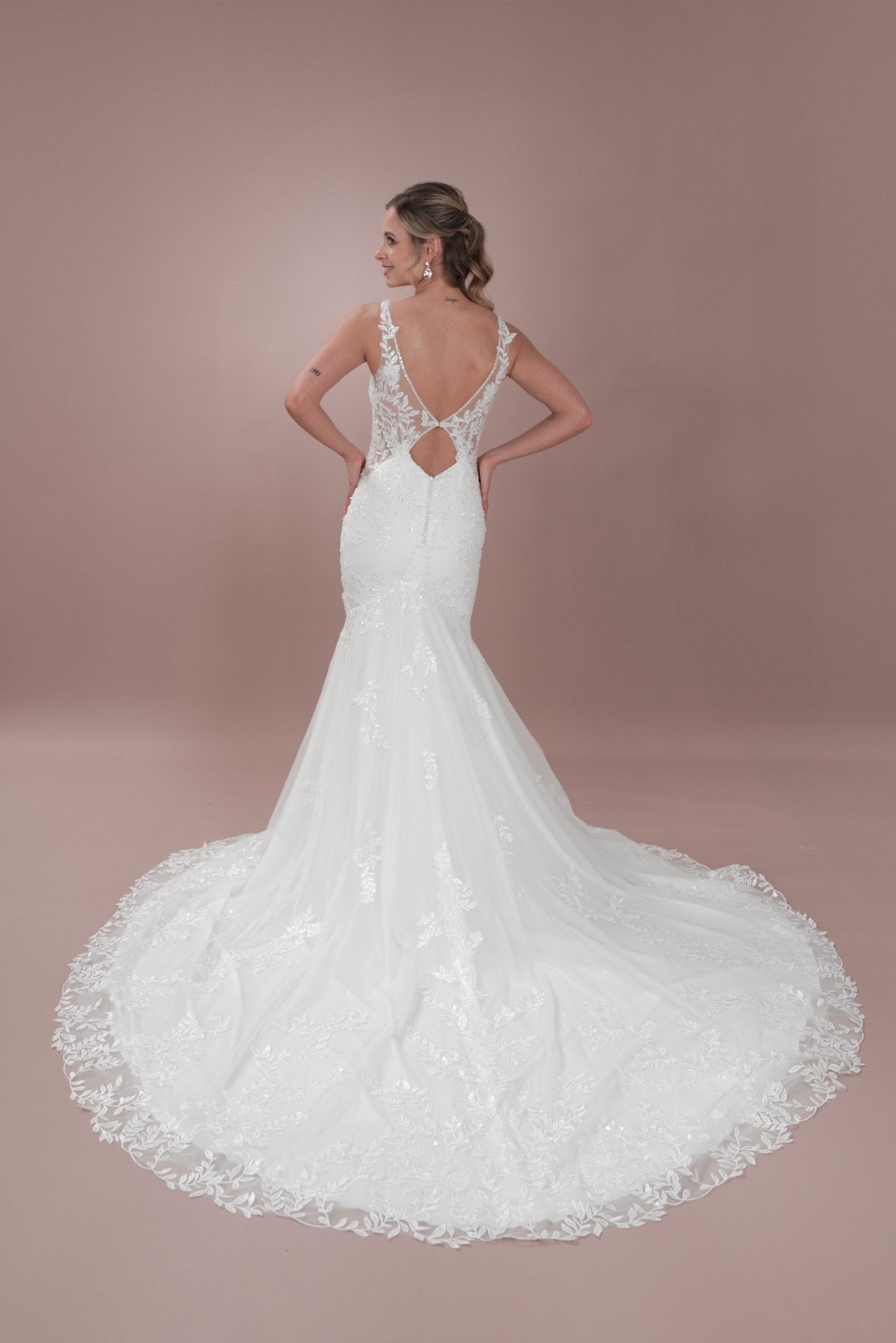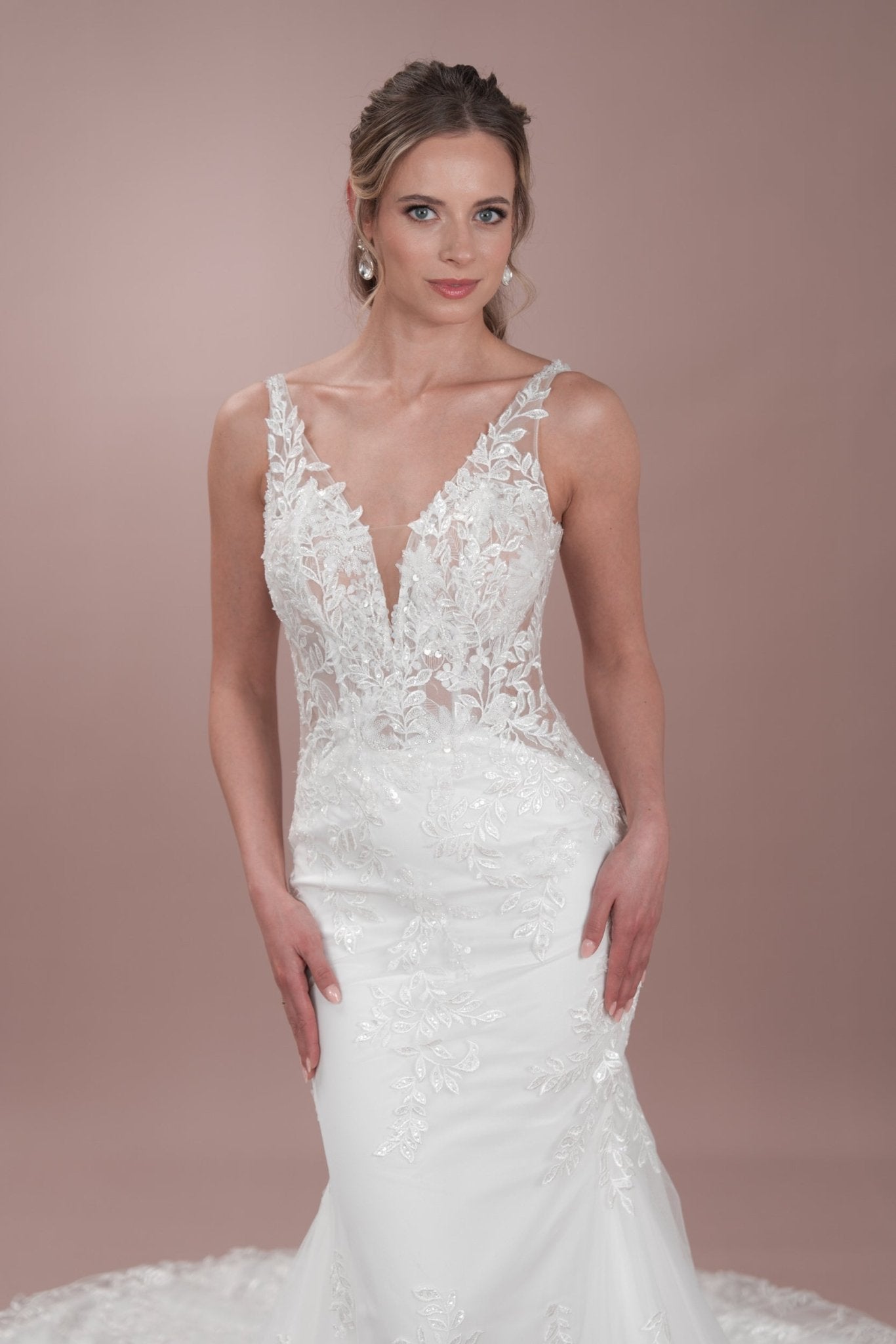 Bist du die strahlende Braut, die alle Blicke auf sich zieht und an ihrem großen Tag einfach umwerfend aussehen will? Dann ist das Hochzeitskleid C24-37 von Bridonista genau das Richtige für dich!
