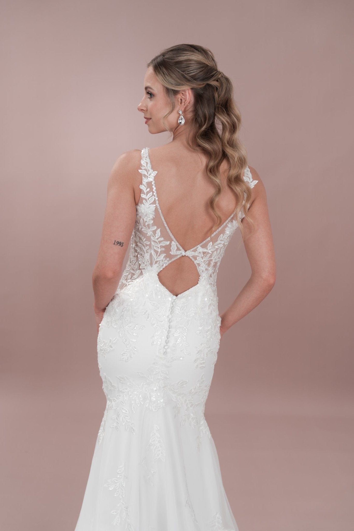 Das Bridonista C24-37 Hochzeitskleid ist nicht nur sexy, sondern auch aufwändig bestickt. Jede einzelne Naht wurde mit viel Liebe zum Detail gefertigt, damit du in diesem Kleid glänzen kannst.