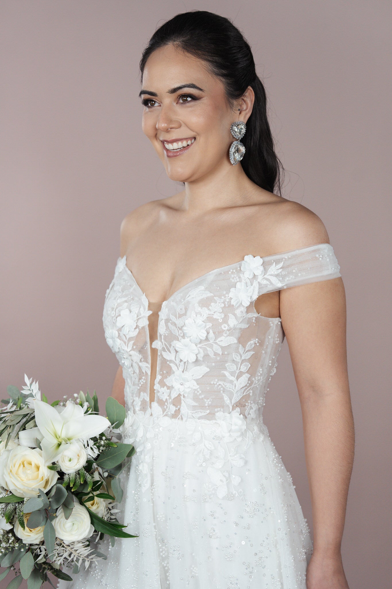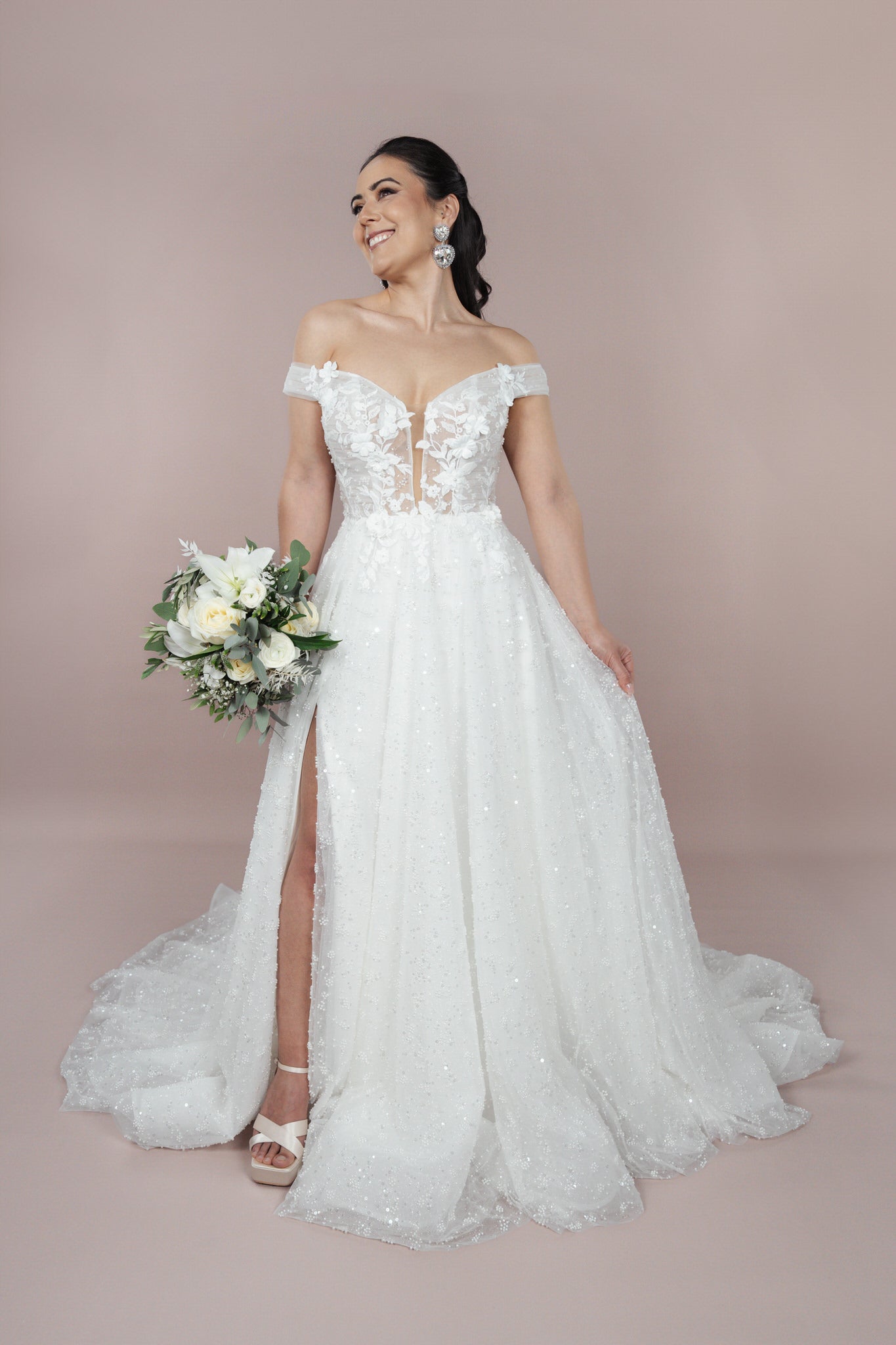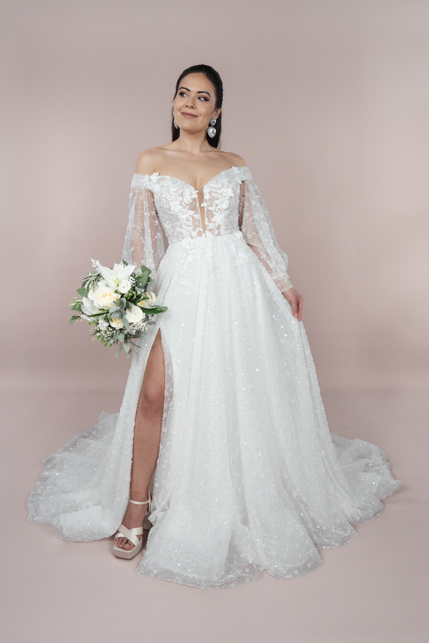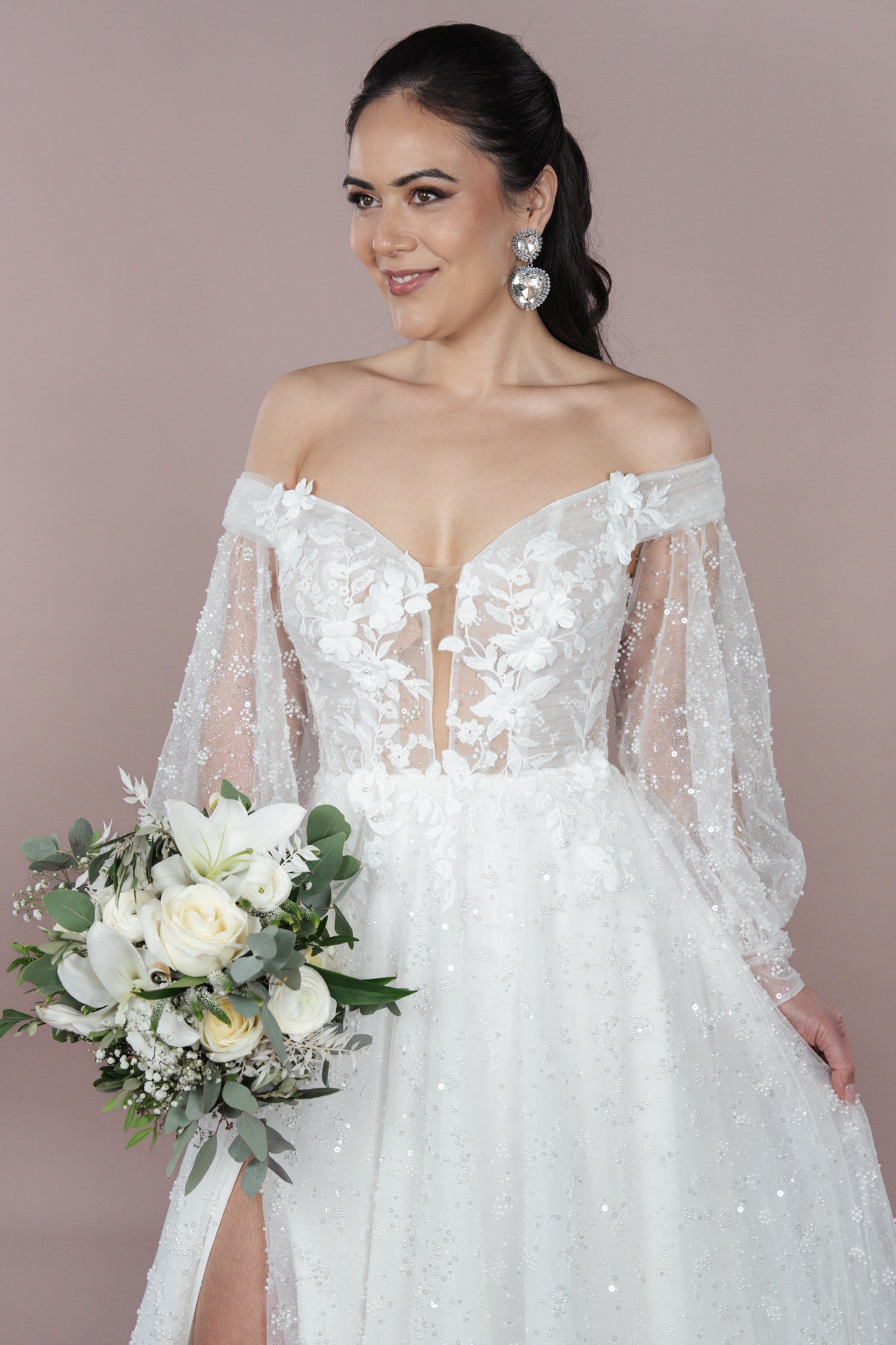 Die Corsage ist mit raffinierten Details versehen und bietet zudem eine transparente Wirkung, die die feminine Seite der Braut perfekt in Szene setzt. Der sexy Beinschlitz sorgt für die notwendige Kühnheit und ermöglicht eine unbeschwerte Bewegung, während er gleichzeitig den Look veredelt.