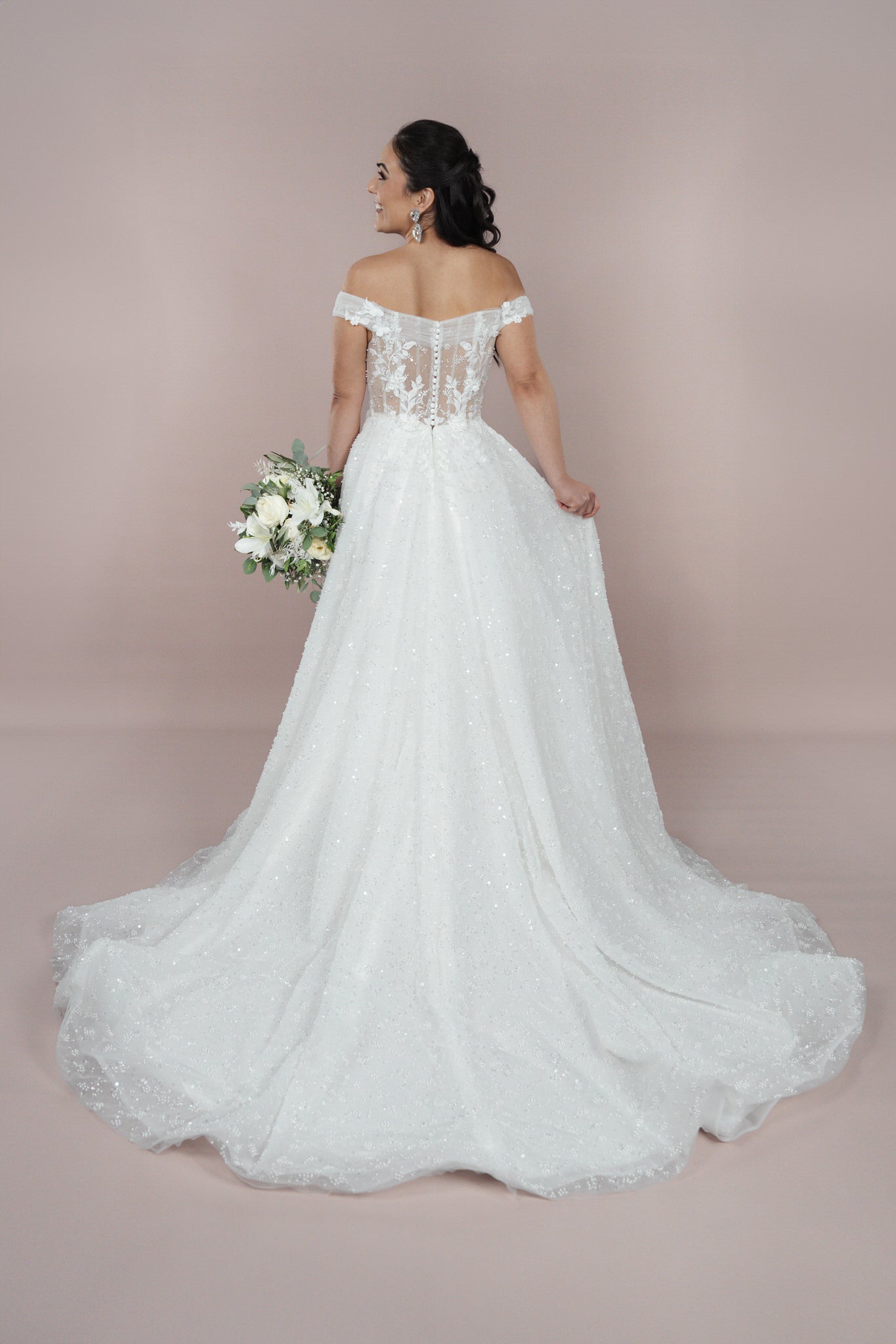 Das Kleid verfügt über abnehmbare Ärmel, die dir die Flexibilität geben, deinen Look für verschiedene Momente des Tages zu variieren. Du kannst die Ärmel bei der Zeremonie tragen und sie entfernen, um einen legereren Stil für den Empfang zu kreieren. Diese Funktion sorgt dafür, dass du dich während des gesamten Tages wohlfühlst.