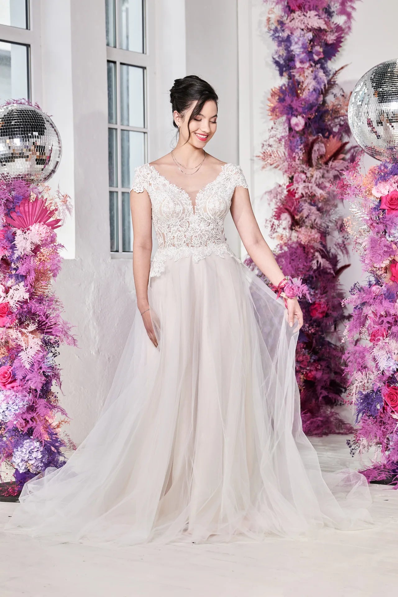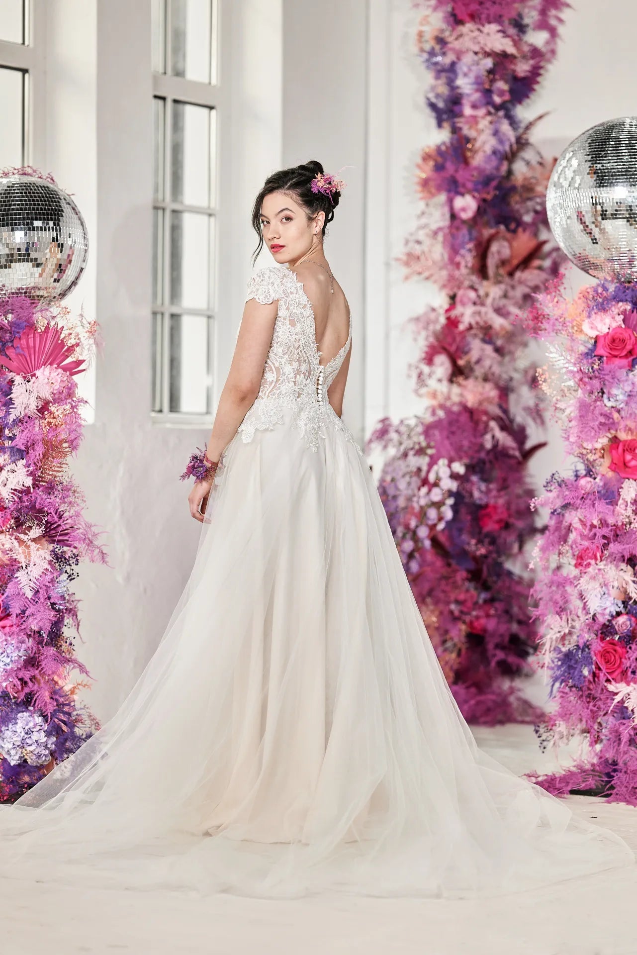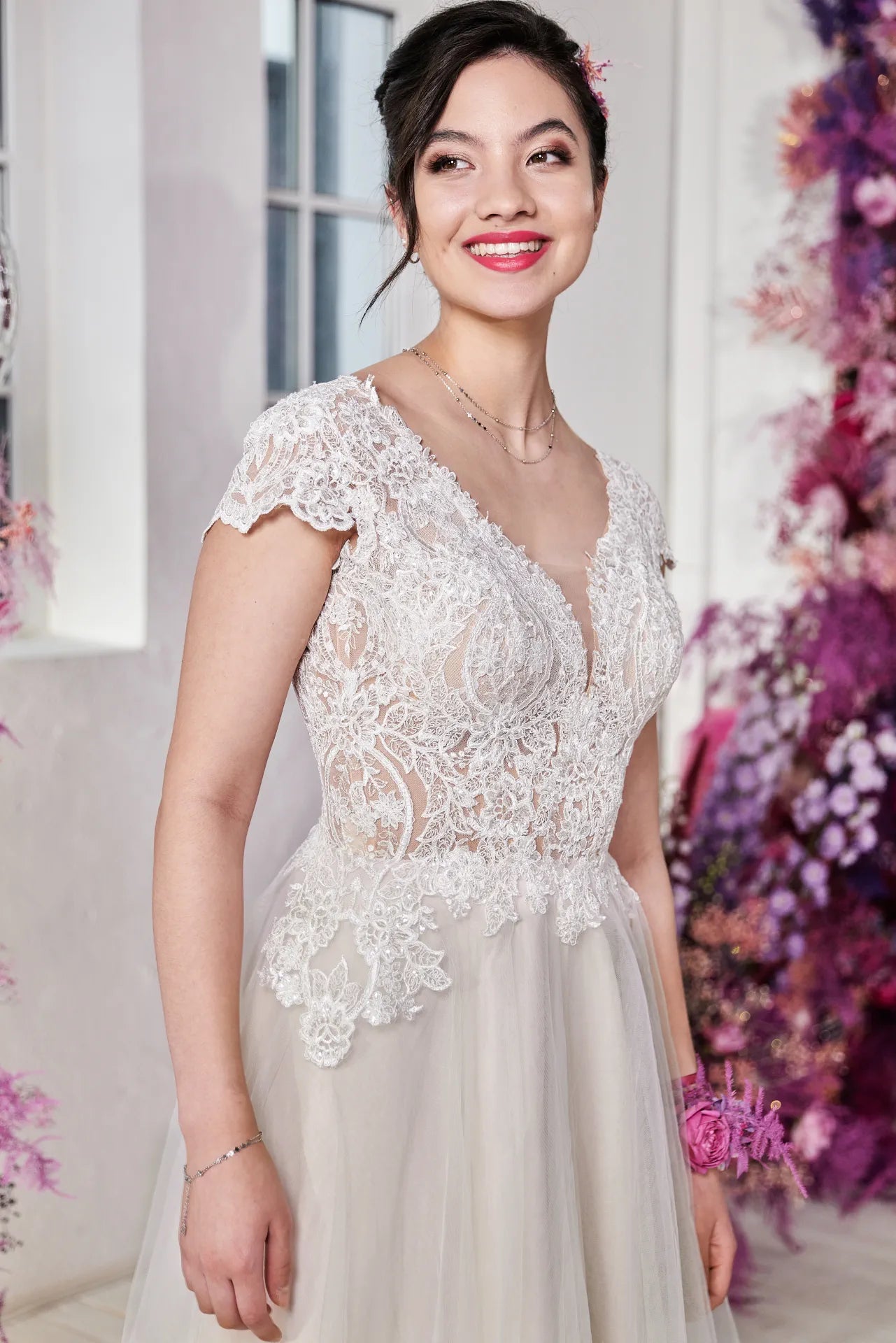 Tritt in einem klassischen, aber stilvollen Kleid der ID-Collection vor den Traualtar! Dieses Hochzeitskleid hat alles, was du brauchst: Chiffonmaterial, einen V-Ausschnitt, Spitze, Flügelärmel und eine A-Linien-Silhouette. Der V-förmige Ausschnitt am Rücken verleiht dem Kleid einen Hauch von Eleganz und sorgt dafür, dass es die perfekte Wahl für deinen Jawort-Tag ist! Wenn es jetzt noch einen Bräutigam dazu gäbe. ID23-17(C)... du hast gerade dein Gegenstück kennengelernt!