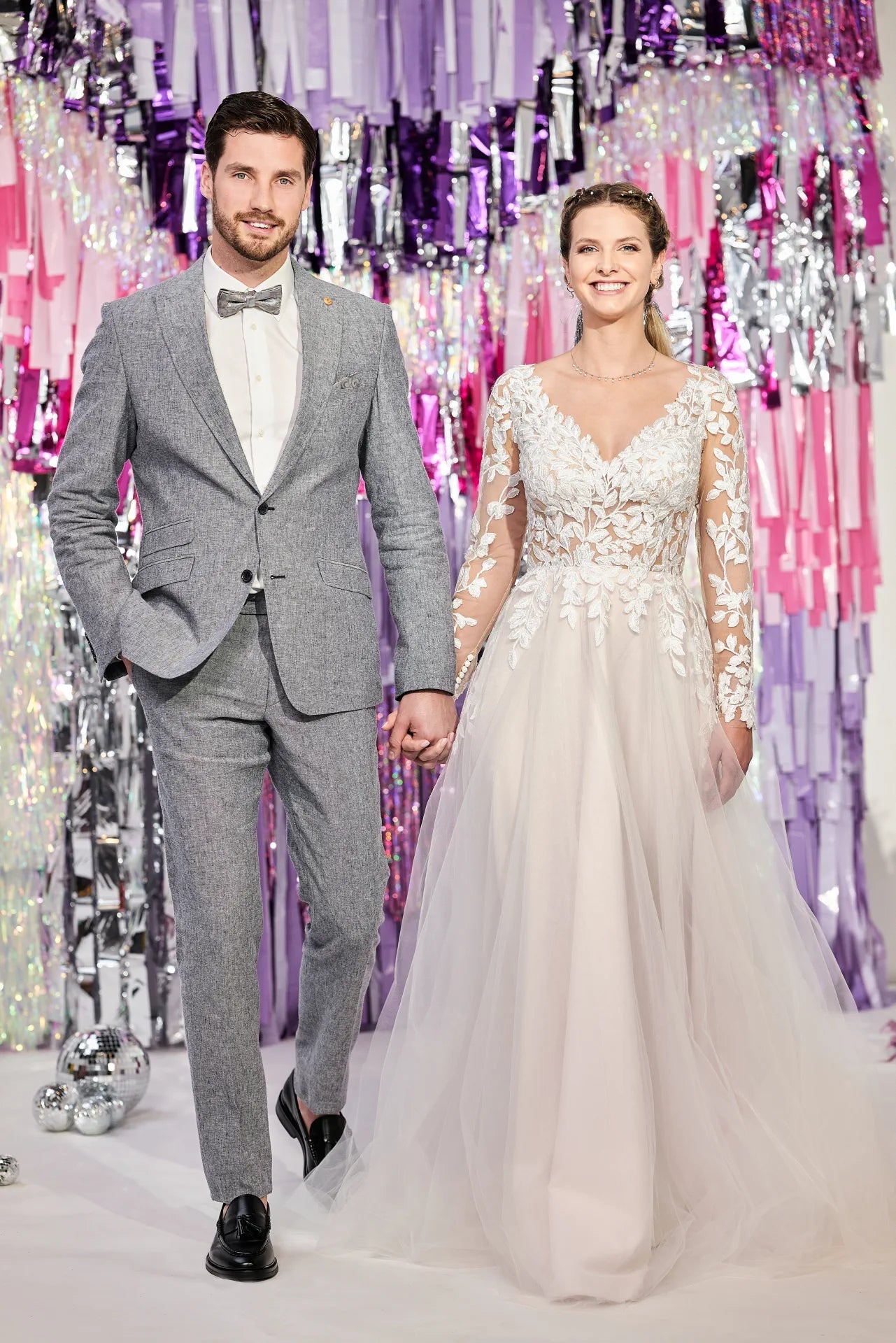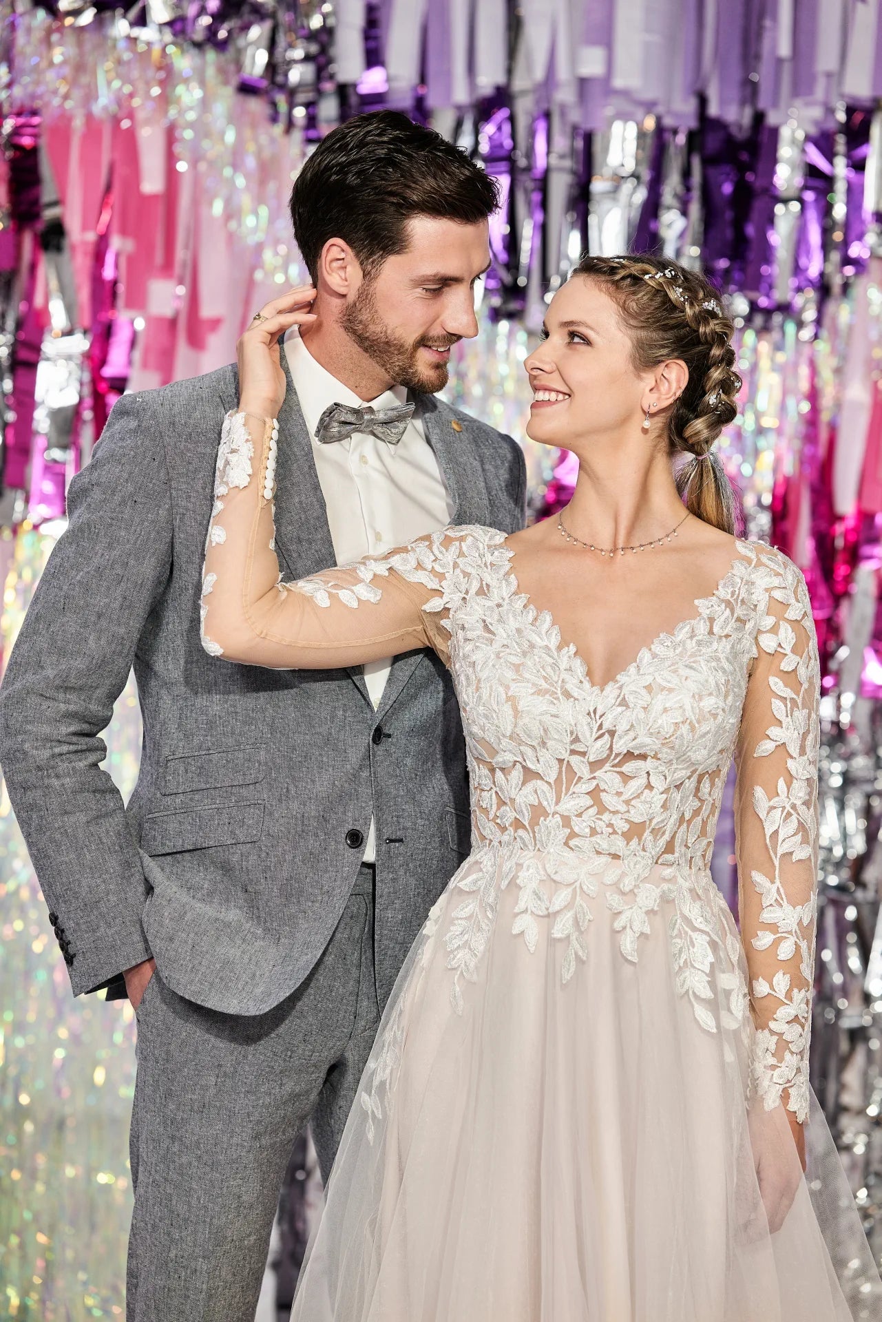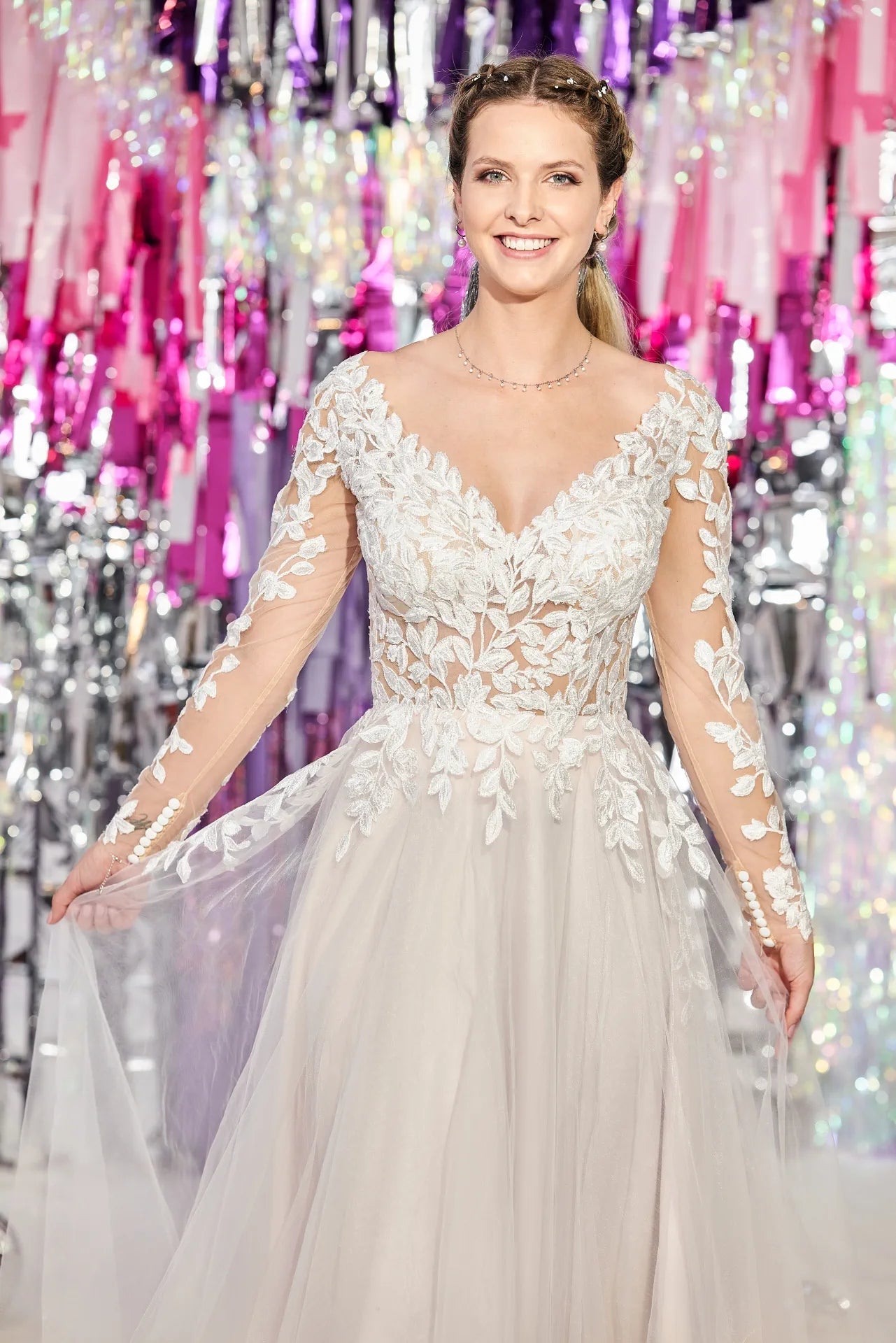 Lass die Herzen an deinem besonderen Tag höher schlagen mit diesem meistverkauften Kleid ID23-20(C)! Dieses wunderschöne Kleid mit V-Ausschnitt und Ärmeln aus Spitze, einer fließenden A-Linie und romantischen 3D-Blumendetails ist eine wunderschöne Kombination aus zeitlosen Stilen. Egal, ob du dich für den klassischen Boho-Stil, den bohemischen Vintage-Stil oder etwas ganz Einzigartiges entscheidest, dieses wunderschöne Brautkleid aus der ID-Kollektion wird für einen magischen und unvergesslichen Hochzeitstag sorgen!