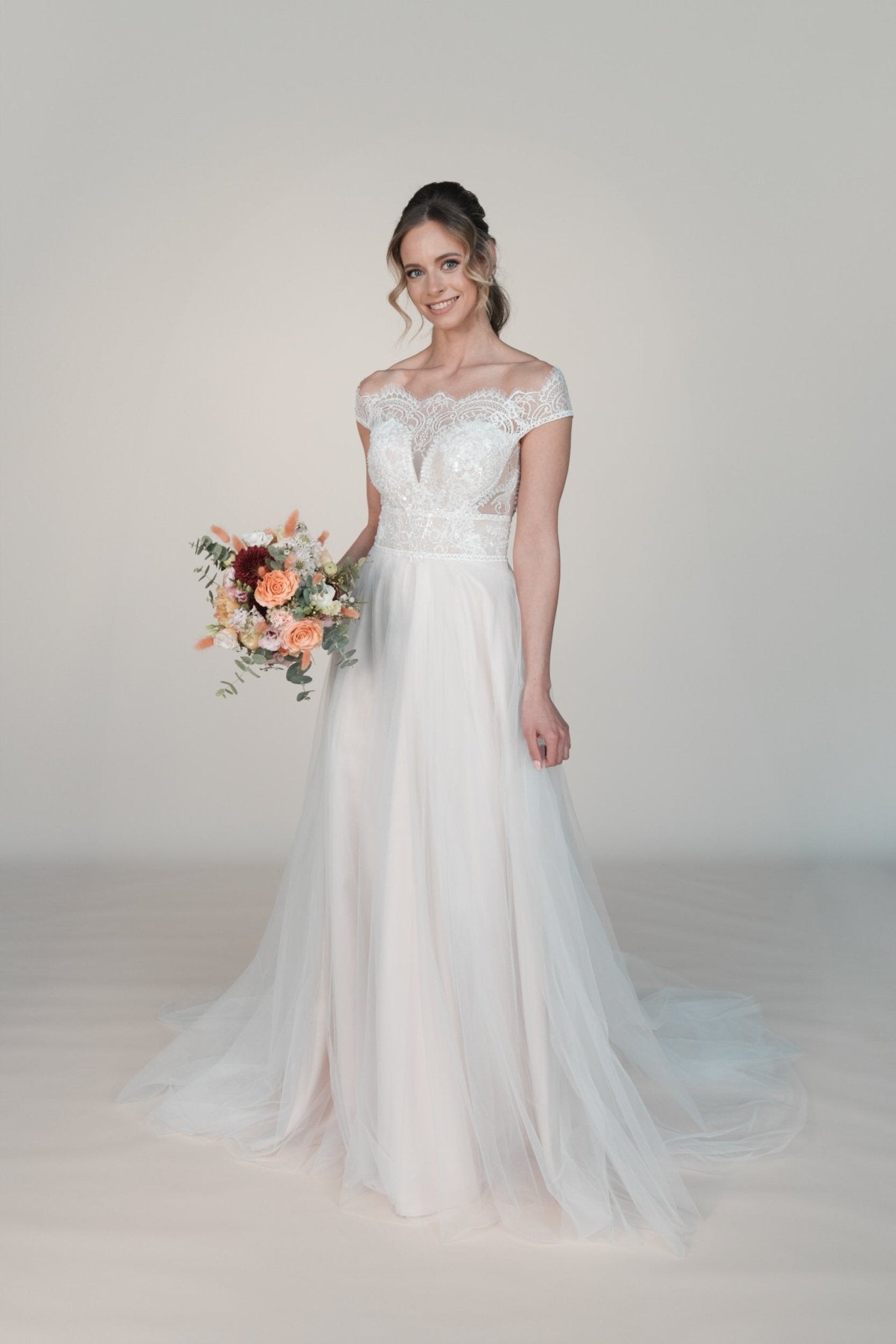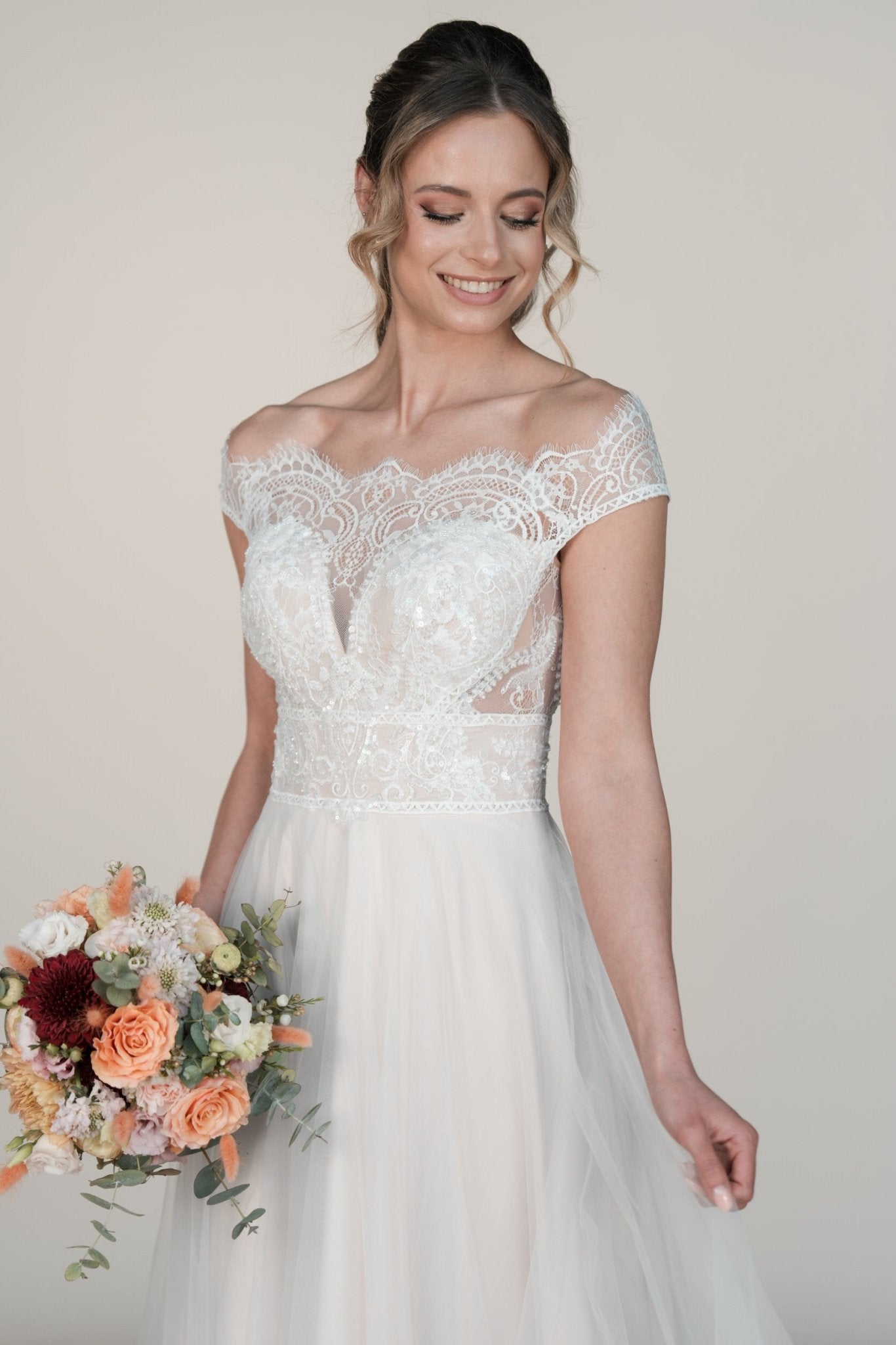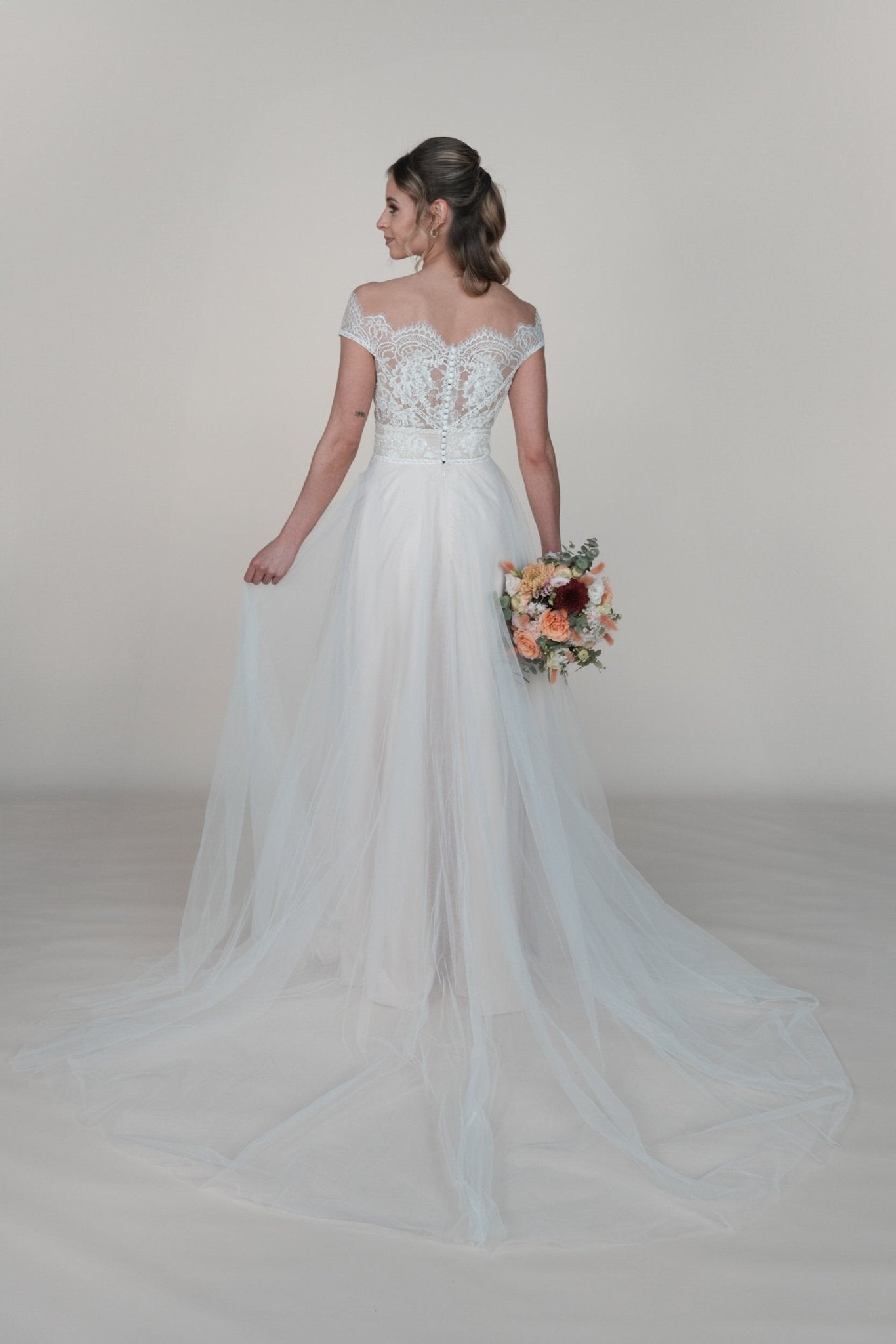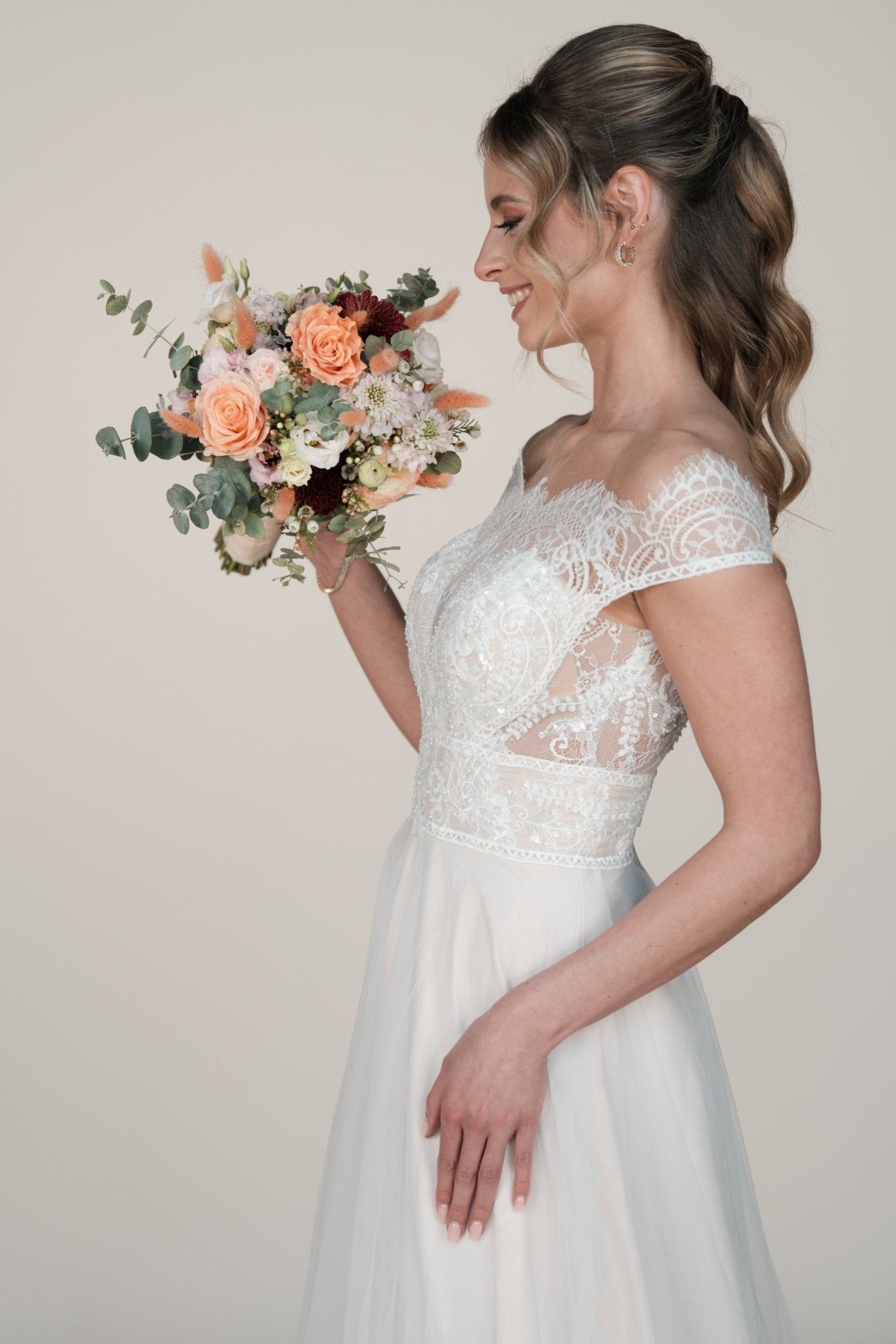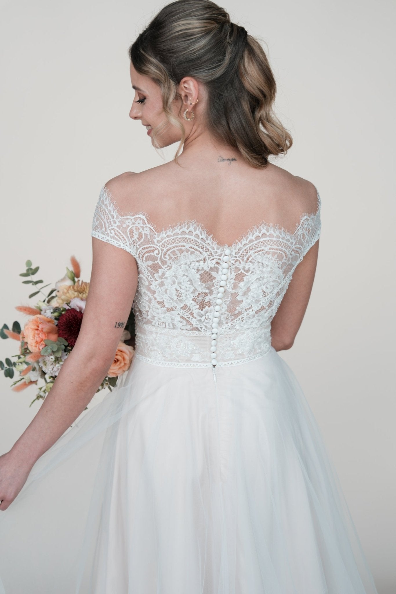 Entfessle deine innere Fashionista mit dem ID25-10 Bridonista Hochzeitskleid! Mit seinem Tüllrock und den feinen Cutouts strahlt dieses Kleid verspielte Romantik aus. Der hohe Rücken und die A-Linien-Silhouette sorgen für einen modernen Touch, während der Boho-Vintage-Look durch Chantilly- und florale Spitzendetails abgerundet wird. Sag ja zu deiner inneren Braut-Fashionista mit dem ID25-10 Bridonista Hochzeitskleid! Dieses Kleid ist perfekt für die nicht-traditionelle Braut, die einen Hauch von Skurrilität und einen Hauch von Magie liebt. Der himmlische Tüllrock und die feinen Cutouts sorgen für eine traumhafte Silhouette, während der hohe Rücken und die A-Linie für einen modernen Twist sorgen. Mit seinen Vintage-Details aus Chantilly und floraler Spitze wird dieses Kleid alle Blicke auf sich ziehen und die Herzen erobern. Es ist ein Must-have für jede errötende Boho-Braut!