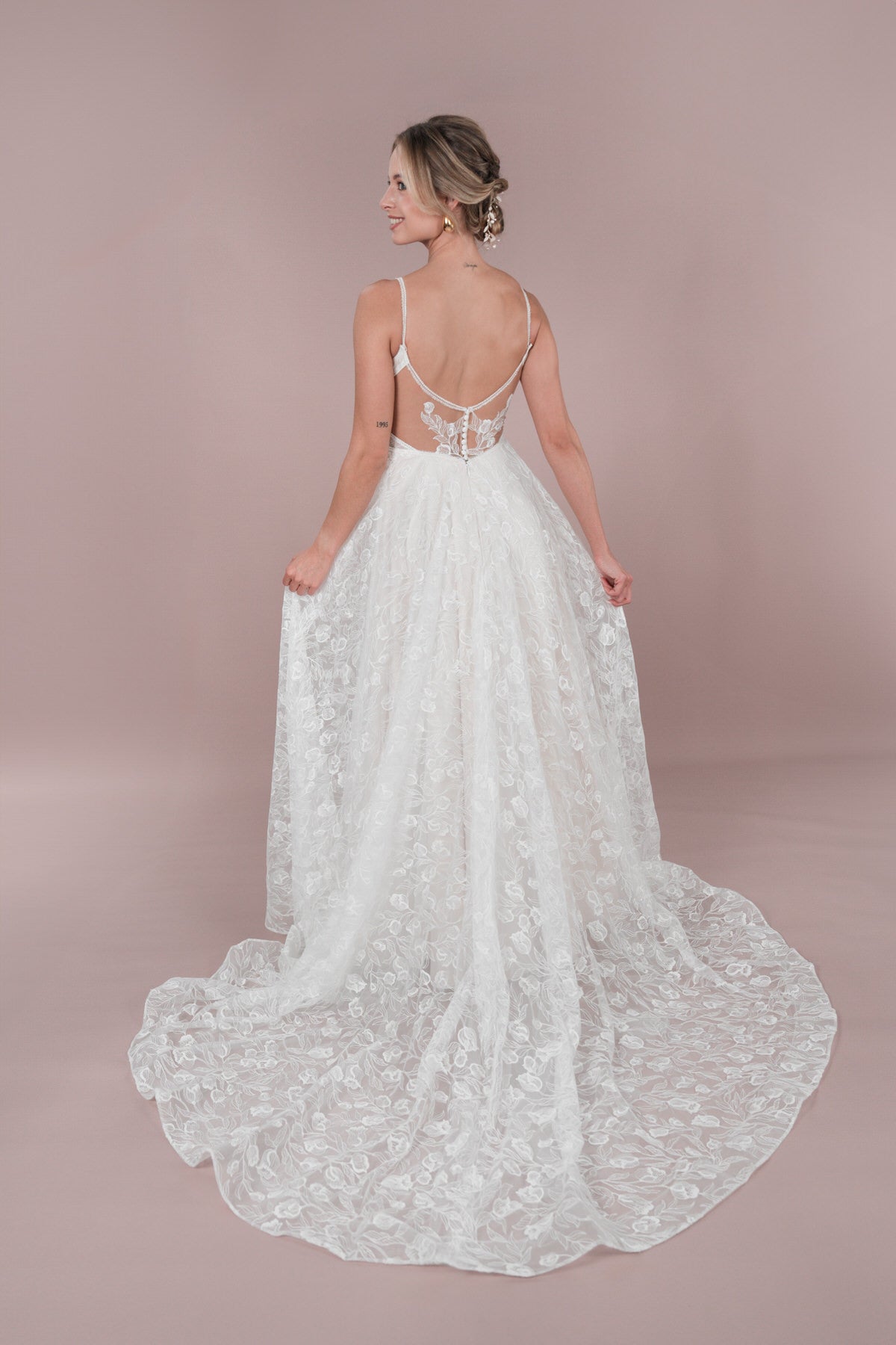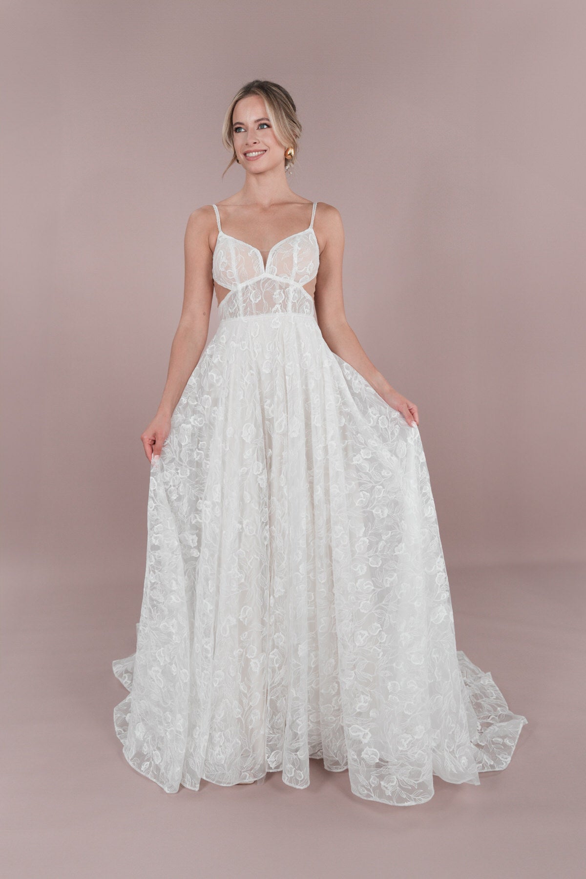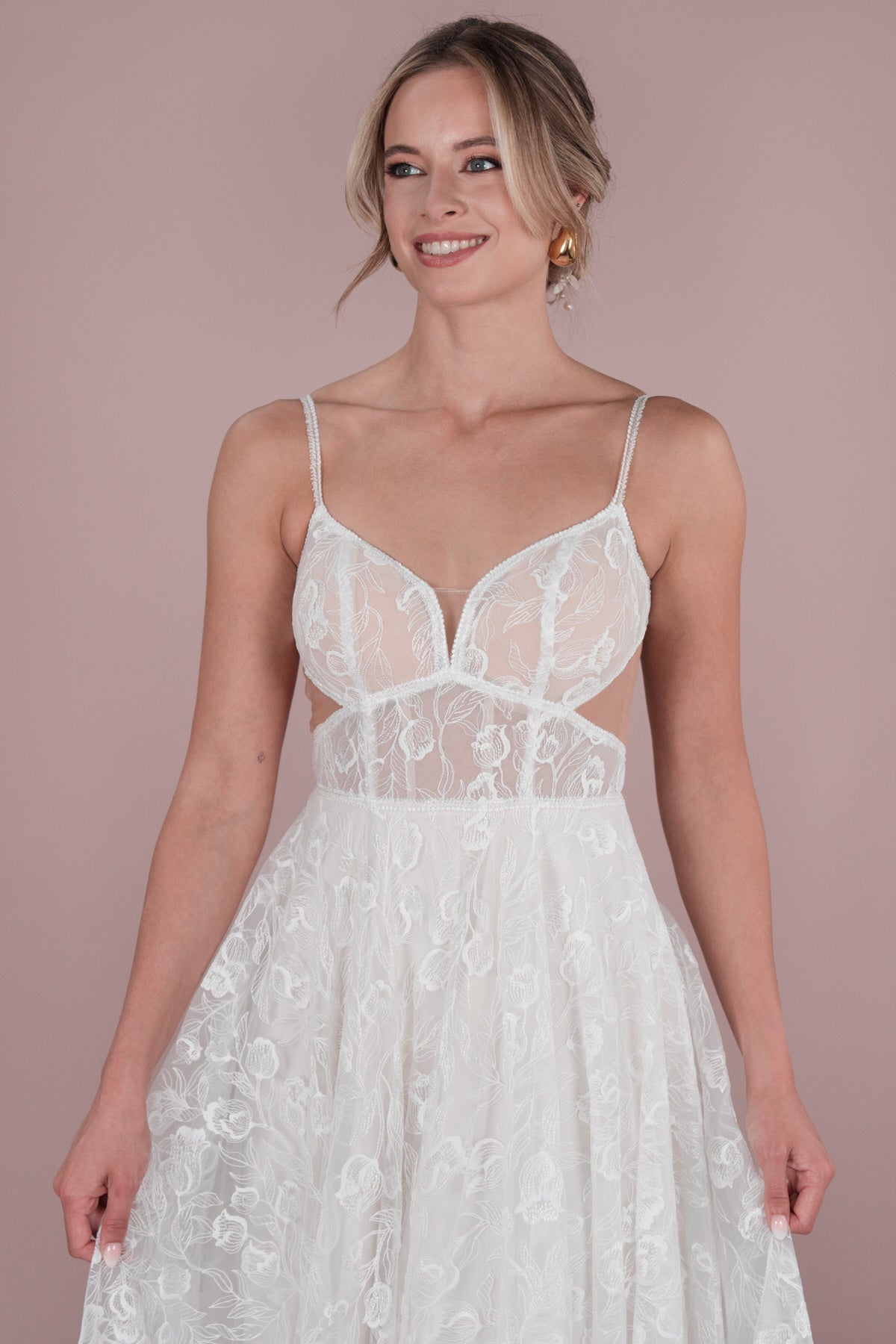 Süß und doch gewagt! Das Bridonista Brautkleid von R2L ist perfekt für boho- und vintage-inspirierte Hochzeiten am Strand. Mit seinem weichen Tüll, dem ausgestellten Schnitt und dem V-Ausschnitt und Rücken verleiht es einen romantischen Look. Wählen Sie zwischen einem Schlitz oder ohne und setzen Sie mit dem Taillenband und den Cutouts Ihre Figur gekonnt in Szene! Egal, ob Sie sich zu einem Schlitz entscheiden oder nicht, Ihre Taille wird auf jeden Fall betont und das Kleid wird Ihr Gesamtbild hervorheben! Das Bridonista Brautkleid von R2L ist perfekt für boho- und vintage-inspirierte Hochzeiten am Strand. Es ist aus weichem Tüll gefertigt und hat einen ausgestellten Schnitt, sowie einen V-Ausschnitt und Rücken, um Ihnen einen romantischen Look zu verleihen. Entscheiden Sie sich noch heute für dieses atemberaubende Kleid und lassen Sie sich von den zusätzlichen Vorteilen verzaubern!