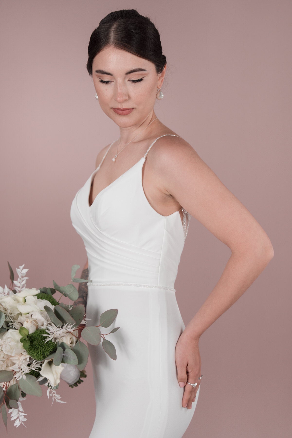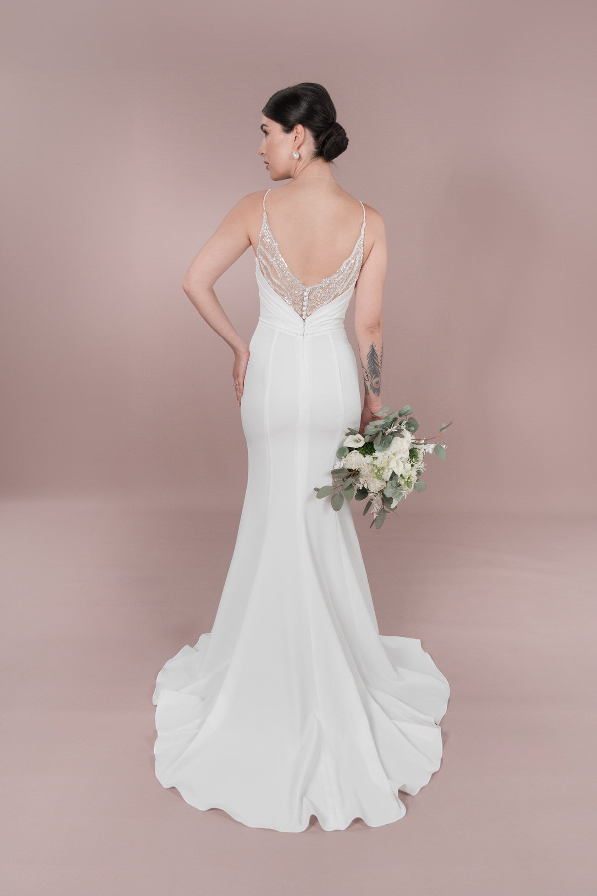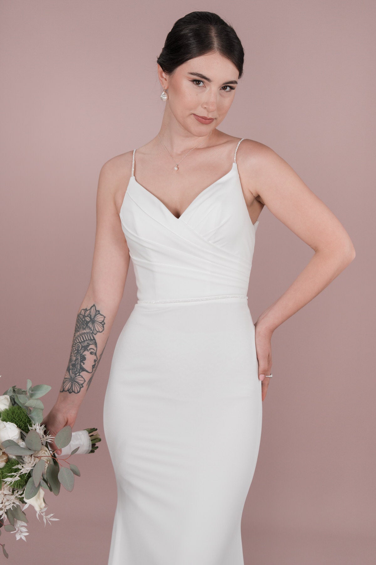 Fühle dich wie eine Bridonista Braut mit diesem schlichten, aber glitzernden Brautkleid. Die Schleppe ist kurz und der Rückenausschnitt in V-Form verleiht einen königlichen Touch. Die Illusion-Tüllverzierung und die geraffte Corsage betonen deine Figur perfekt. Teil der R2L Capsule Kollektion für einen klassischen Look. Jetzt im Standesamt Stil. Es ist ein schlichter und doch funkelnder Stil für die Bridonista Braut. Mit einem kurzen Schleppe und einem V-förmigen Rückenausschnitt, fühlt man sich wie eine Königin. Diese schillernde Illusion-Tüllverzierung und die geraffte Corsage werden deine Figur hervorheben. Es ist ein Teil der R2L Capsule Kollektion - einer klassichen Wahl für das Standesamt!