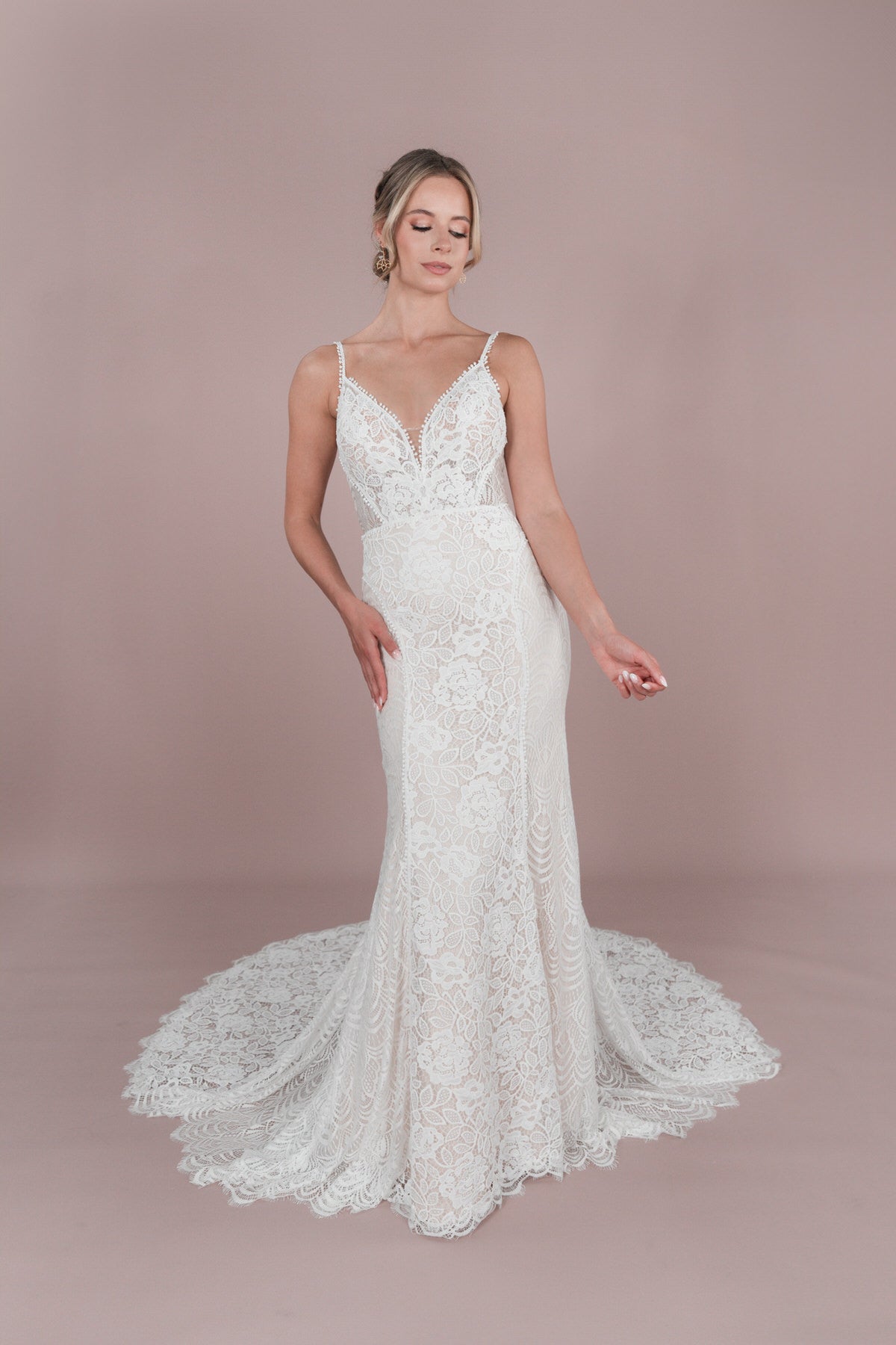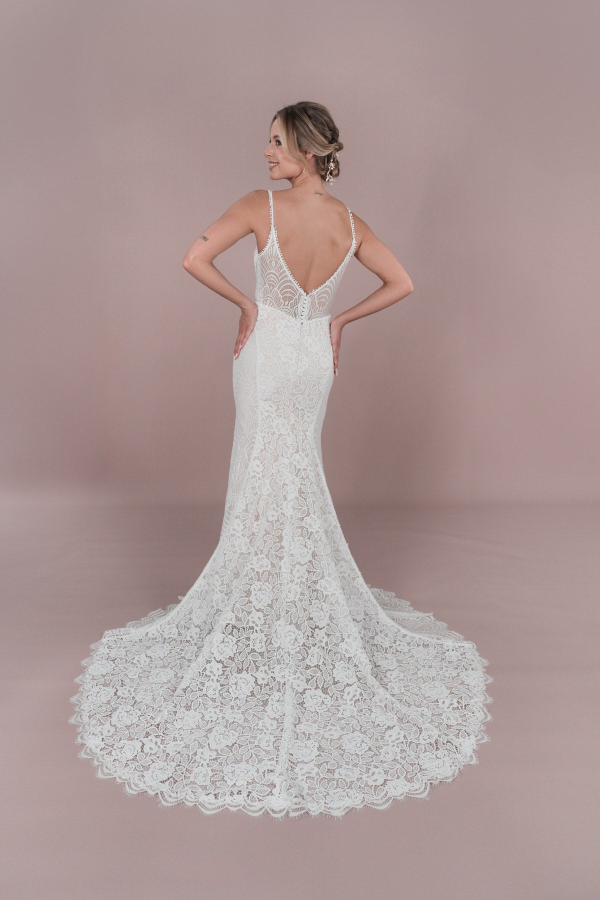 Schnapp dir den R2L25-C-F04 - ein Spitzen-Brautkleid mit sexy Rückenausschnitt und Perlenverzierung. Die Knopfleiste und das doppelte Taillenband verleihen ihm einen besonderen Vintage-Touch. Perfekt für eine Boho oder Vintage Hochzeit am Strand. Mit Chantilly Spitze, Illusion-Tüll und mittellanger Schleppe - ein echter Hingucker! Unsere Hochzeitskleider sind ein echter Hingucker! Der R2L25-C-F04 ist das perfekte Outfit für eine Boho oder Vintage Hochzeit am Strand. Mit seinem sexy Rückenausschnitt, der Perlenverzierung, der Knopfleiste und dem doppelten Taillenband verleiht es dir einen besonderen Vintage-Touch. Und mit Chantilly Spitze, Illusion-Tüll und mittellanger Schleppe siehst du einfach umwerfend aus! Schnapp ihn dir jetzt! (Aber halt ihn gut fest, damit er nicht wegrennt!)
