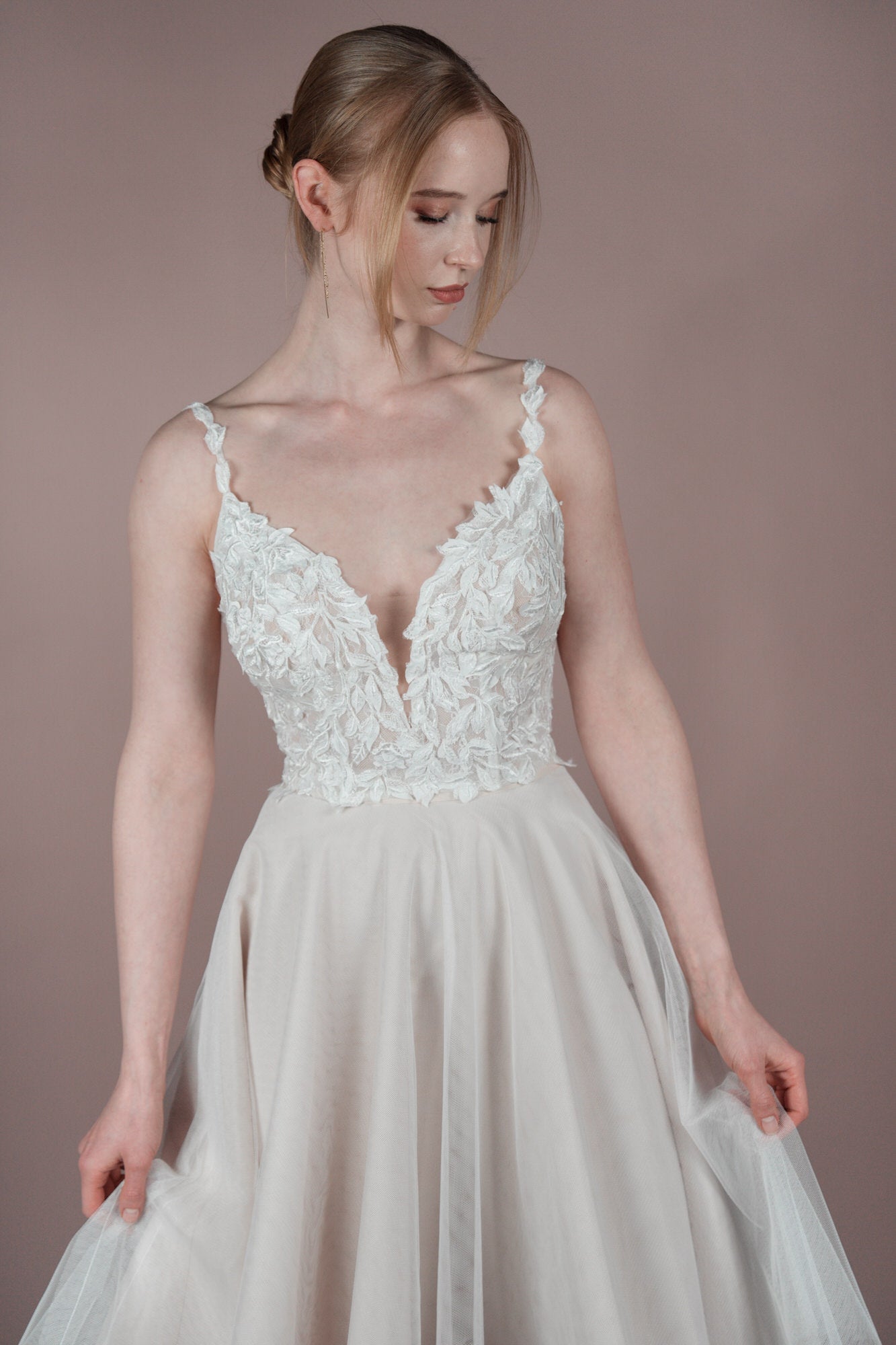 Mach dich bereit, an deinem großen Tag mit dem R2L25-C05 Top zu beeindrucken! Dieses romantische Spitzentop ist mit seinem einzigartigen Bridonista Wedding Seperate Body Design perfekt für den unkonventionellen Brautlook. Mit seinen feinen Details aus floraler Spitze und Blattspitze, Corsage-Akzenten und V-Ausschnitten sorgt dieses Oberteil bei jeder standesamtlichen Hochzeit oder Chantilly-Zeremonie für Aufsehen. (Zeig deinen Stil und sorge mit dem Oberteil R2L25-C05 für ein Statement an deinem besonderen Tag. Dieses wunderschöne Spitzentop mit eleganten Blumen- und Blattspitzendetails, Corsage-Akzenten und V-Ausschnitten ist perfekt für einen unkonventionellen Brautlook und wird bei deiner standesamtlichen Trauung oder Chantilly-Zeremonie garantiert alle Blicke auf sich ziehen. Kombiniere es mit unserer Auswahl an Kleidungsstücken für einen wirklich einzigartigen und persönlichen Look.