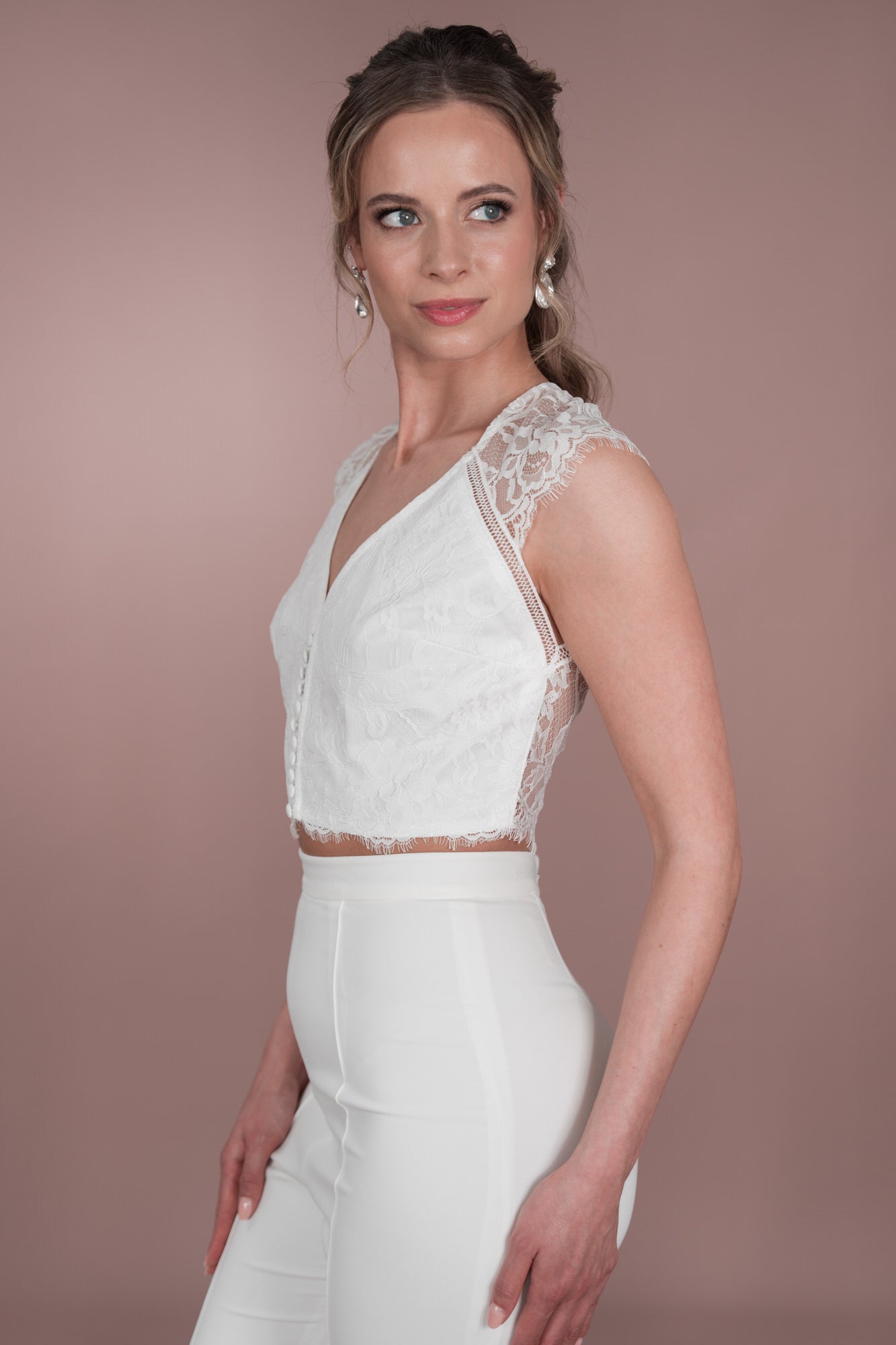 Mach dich bereit, dich Hals über Kopf in unser R2L25-T01 Top zu verlieben. Mit seinem verspielten V-Ausschnitt und der feinen floralen Spitze ist dieses Oberteil perfekt für jede Boho oder Vintage inspirierte Hochzeit. Der Illusionstüll und die hohe Rückenpartie verleihen ihm einen romantischen Touch, während die Knopfleiste und die Corsage dafür sorgen, dass es wirklich einzigartig ist. Trenne nicht nur das Oberteil, sondern hebe dich von der Masse ab mit unserem Bridonista Wedding Seperate Top. Dieses Top ist ein absoluter Stunner, mit seinem V-Ausschnitt und den Spitzen-Details ist es perfekt für eine standesamtliche Hochzeit im Boho oder Vintage-Stil. Der hohe Rücken und der Illusionstüll sorgen für einen Hauch von Romantik, während die einzigartige Knopfleiste und die Corsage dafür sorgen, dass es sich von der Masse abhebt. Sag "Ja" zur Bridonista mit diesem unverzichtbaren Oberteil für die Hochzeit.