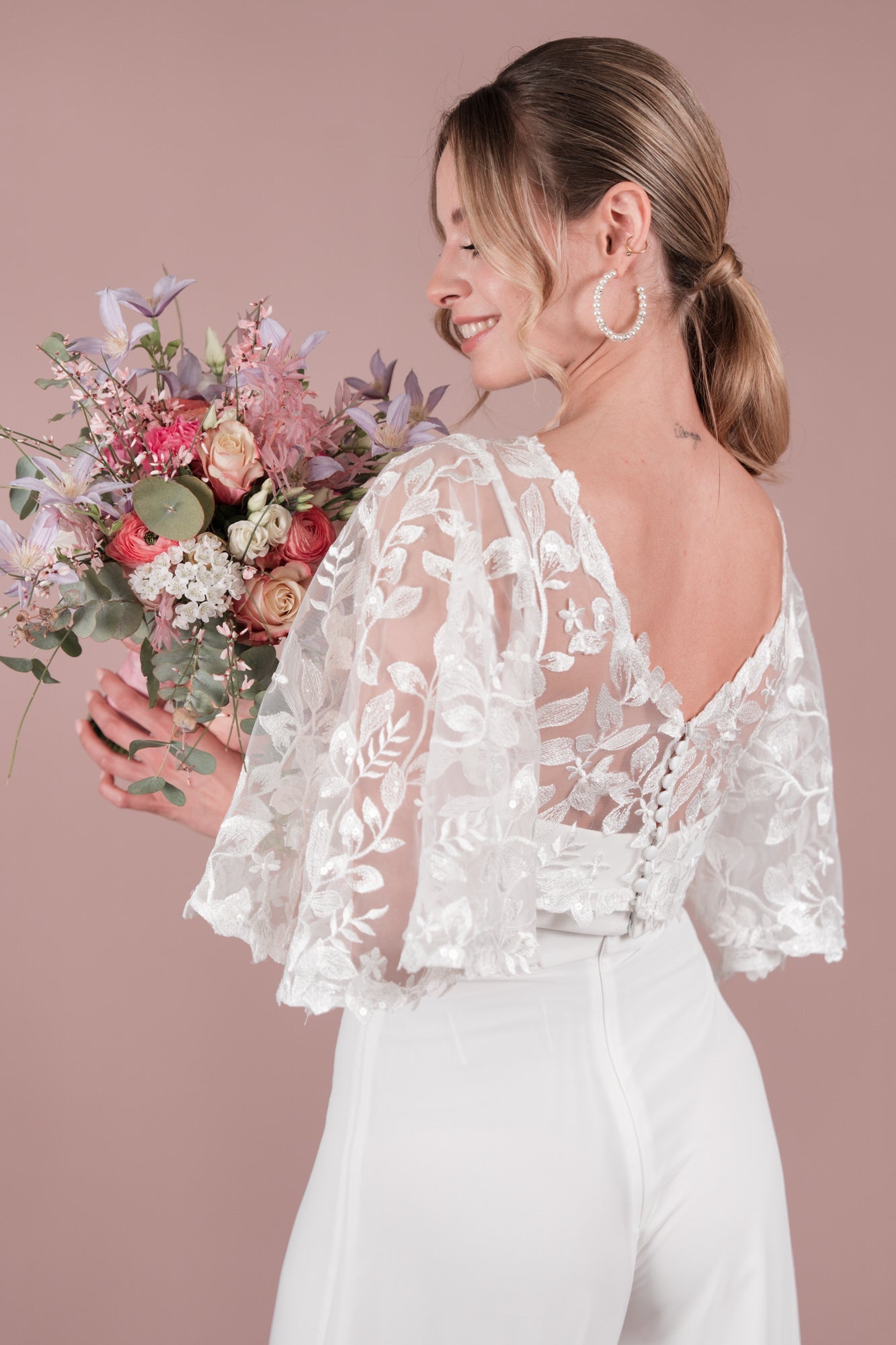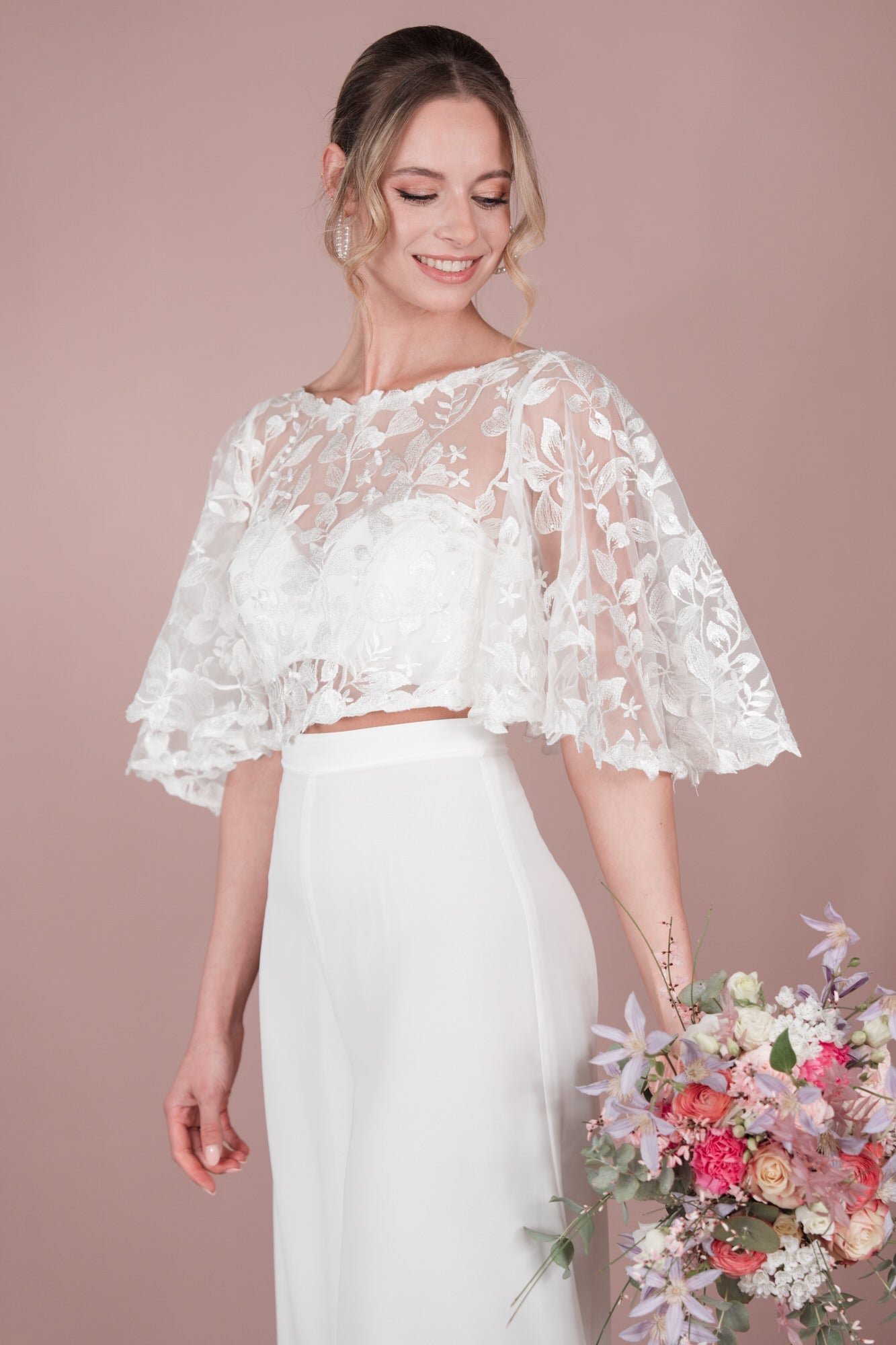 Mach dich bereit, auf deiner standesamtlichen Hochzeit mit dem R2L25-T05 Top zu beeindrucken. Dieses Bridonista-Top hat eine atemberaubende florale Spitze und einen romantischen hohen Ausschnitt, perfekt für einen Boho-Look oder einen Vintage-Look. Mit seinem einzigartigen V-Rücken und den eleganten Fledermausärmeln hebt sich dieses Oberteil von der Masse ab. (Sorge mit dem R2L25-T05 Top für ein elegantes Statement, das zu deinem persönlichen Stil passt. Dieses wunderschöne Bridonista-Top besticht durch seine floralen Spitzendetails und den romantischen Ausschnitt, der für einen Boho- oder Vintage-Look sorgt. Der einzigartige V-Rücken und die eleganten Fledermausärmel sorgen dafür, dass es sich von anderen Oberteilen abhebt. (Lass dir seinen unwiderstehlichen Charme nicht entgehen!)