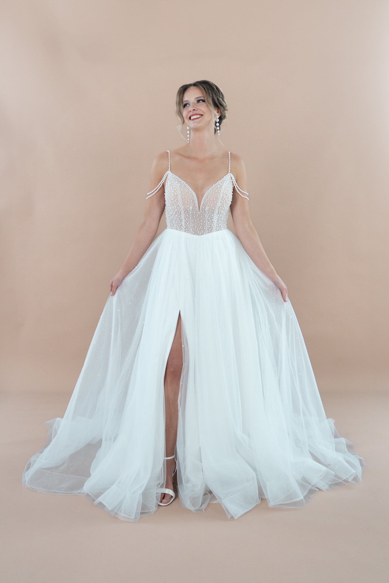 Dieses Hochzeitskleid ist perfekt für dich, wenn du von einem Look träumst, der glamourösen Glanz mit romantischer Eleganz und einem Hauch von Verführung vereint. Der A-Linien-Schnitt schmeichelt deiner Figur, während die Perlen, die Bestickung und die Cutouts für unvergessliche Momente sorgen – bei der Zeremonie, auf Fotos oder auf der Tanzfläche. Ob für eine romantische Gartenhochzeit, eine Zeremonie im Freien oder eine elegante Feier in einem Ballsaal – das R2L26-C-A25 passt zu jeder Kulisse. Die hochwertige Verarbeitung garantiert dir Komfort und Selbstbewusstsein von der Zeremonie bis zur letzten Tanzrunde.