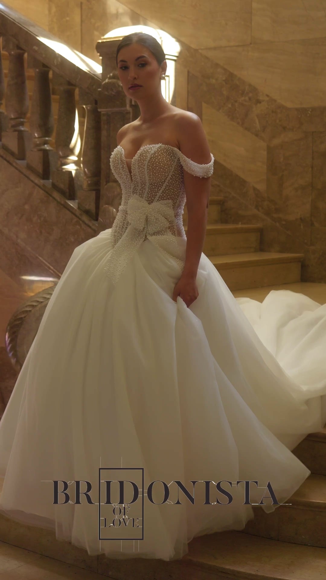 Das Bridonista R2L26-C-B06 besticht durch seinen royalen Princess-Schnitt, der deine Silhouette sanft umschmeichelt und in einen opulenten Rock mit langer Schleppe übergeht – ideal für einen dramatischen Auftritt. Der elegante Carmen-Ausschnitt in Kombination mit einem zarten Herzausschnitt und einem dezenten V-Ausschnitt betont dein Dekolleté auf romantische Weise, während die Off-the-Shoulder-Ärmel deine Schultern stilvoll in Szene setzen. Der Rücken vereint zwei Looks: ein hoher Rücken für klassische Eleganz und ein tiefer V-Ausschnitt für einen Hauch von Verführung. Die langgezogene Taillie schafft eine schmeichelhafte Silhouette, die deine Figur perfekt zur Geltung bringt. Eine filigrane Knopfleiste am Rücken rundet das Design ab und unterstreicht die hochwertige Handwerkskunst dieses Kleides.