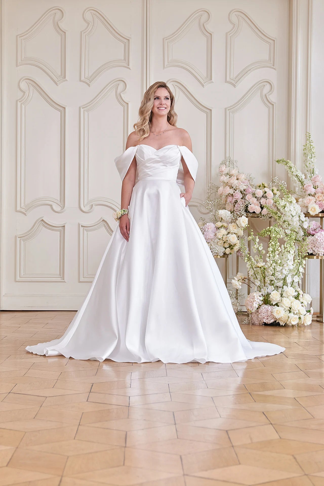 Wähle für deinen großen Tag das Hochzeitskleid S24-06, das für einen großen Auftritt sorgen wird! Dieser moderne Klassiker ist schlicht und elegant, mit einer klassischen A-Linie aus Mikado-Stoff, einem Herzchen-Ausschnitt, der auch schulterfrei sein kann, wenn du dich frech fühlst, sowie Rüschen, Taschen und einer Knopfleiste. Und die kurze Schleppe? Ein wahrgewordener Traum! Ein Kleid, das sie zum Schwärmen bringen wird.