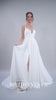 Der V-Ausschnitt des Kleides rahmt dein Dekolleté mit einer klaren, femininen Linie ein, die eine subtile Eleganz ausstrahlt und dein Strahlen unterstreicht. Die zarten Spaghetti-Träger verleihen dem Kleid eine luftige Leichtigkeit, die deine Schultern mit einer modernen, doch zeitlosen Note betont. Der fließende Chiffon-Rock, luftig und geschmeidig, fällt in sanften Wellen und mündet in eine mittellange Schleppe, die deinem Auftritt eine anmutige Dramatik verleiht. Ein dezenter Schlitz im Rock fügt eine verspielte Note hinzu, die Bewegungsfreiheit schenkt und deinen Look mit einem Hauch von Lebendigkeit erfüllt.