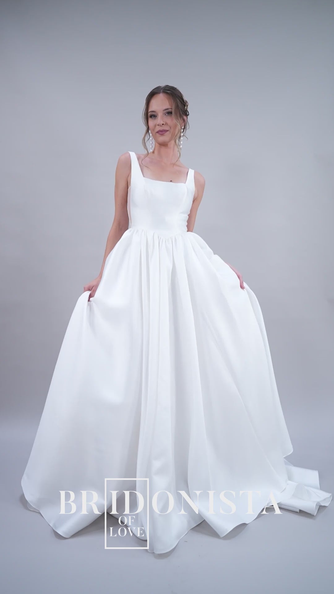 Spüre die luxuriöse Glätte des Mikado-Stoffs, der deine Bewegungen wie ein zarter Fluss begleitet, und lass dich von der klaren, eleganten Linienführung dieses Kleides tragen. Mit dem Bridonista S26-B02 wirst du nicht nur eine Braut sein – du wirst eine Königin, die die Herzen aller berührt und deinen Hochzeitstag in ein zeitloses Märchen verwandelt.