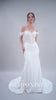 Der herzförmige Carmen-Ausschnitt, gestaltet im off-the-shoulder-Stil, rahmt dein Dekolleté mit einer zarten, verführerischen Linie ein, die deine Schultern und dein Schlüsselbein auf eine sinnliche Weise betont. Die feine Chantilly-Spitze verleiht dem Kleid einen Lingerie-Look, der wie ein hauchdünnes Kunstwerk über deine Haut gleitet und einen Hauch von Romantik mit sexy Raffinesse verbindet. Der glatte Crepe-Rock, luftig und geschmeidig, fällt in sanften Wellen und mündet in eine mittellange Schleppe, die deinem Auftritt eine anmutige Dramatik verleiht. Ein dezenter Schlitz im Rock fügt eine verspielte Note hinzu, die Bewegungsfreiheit gewährleistet und deinen Look mit einem Hauch von Lebendigkeit erfüllt.