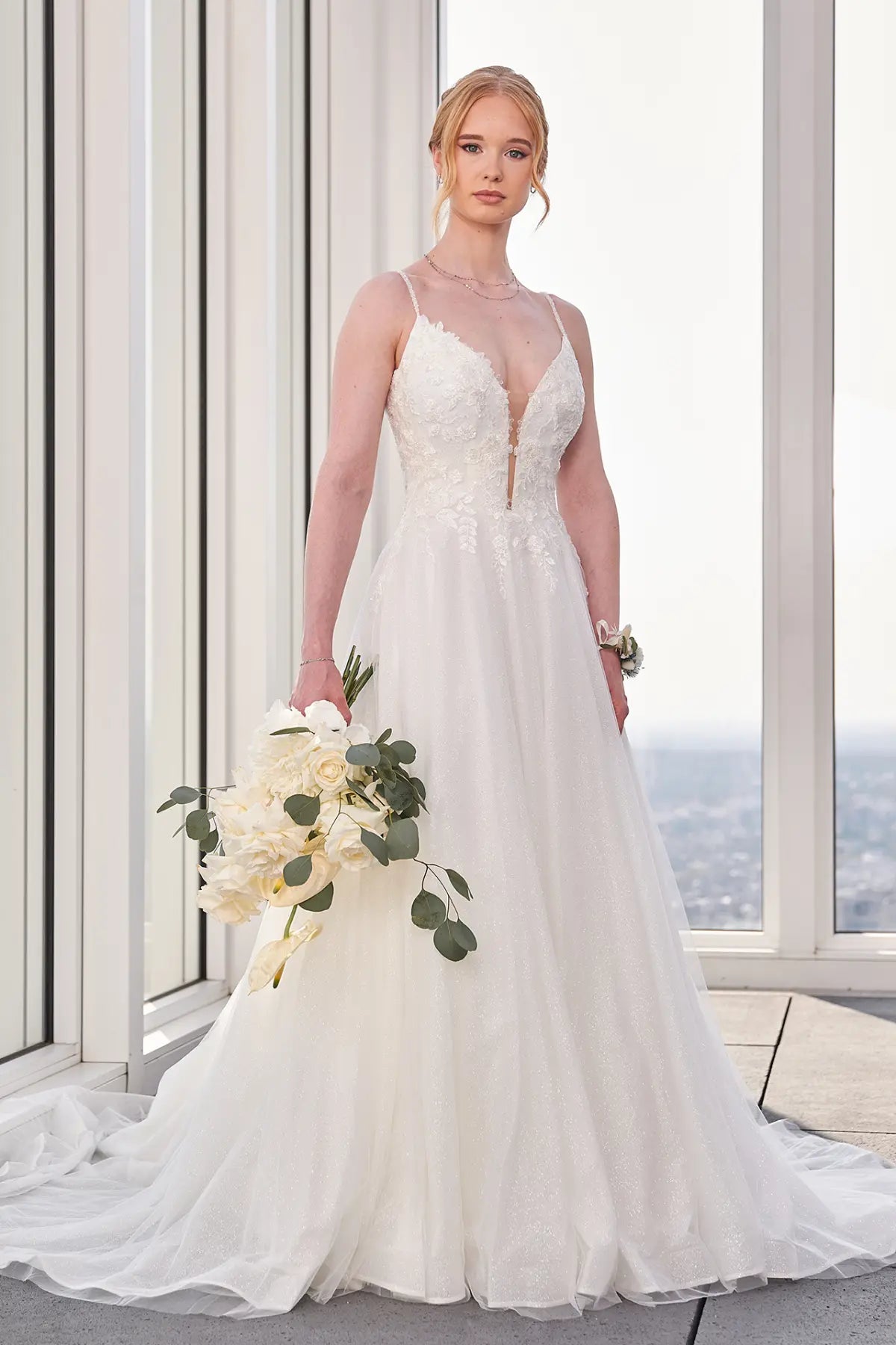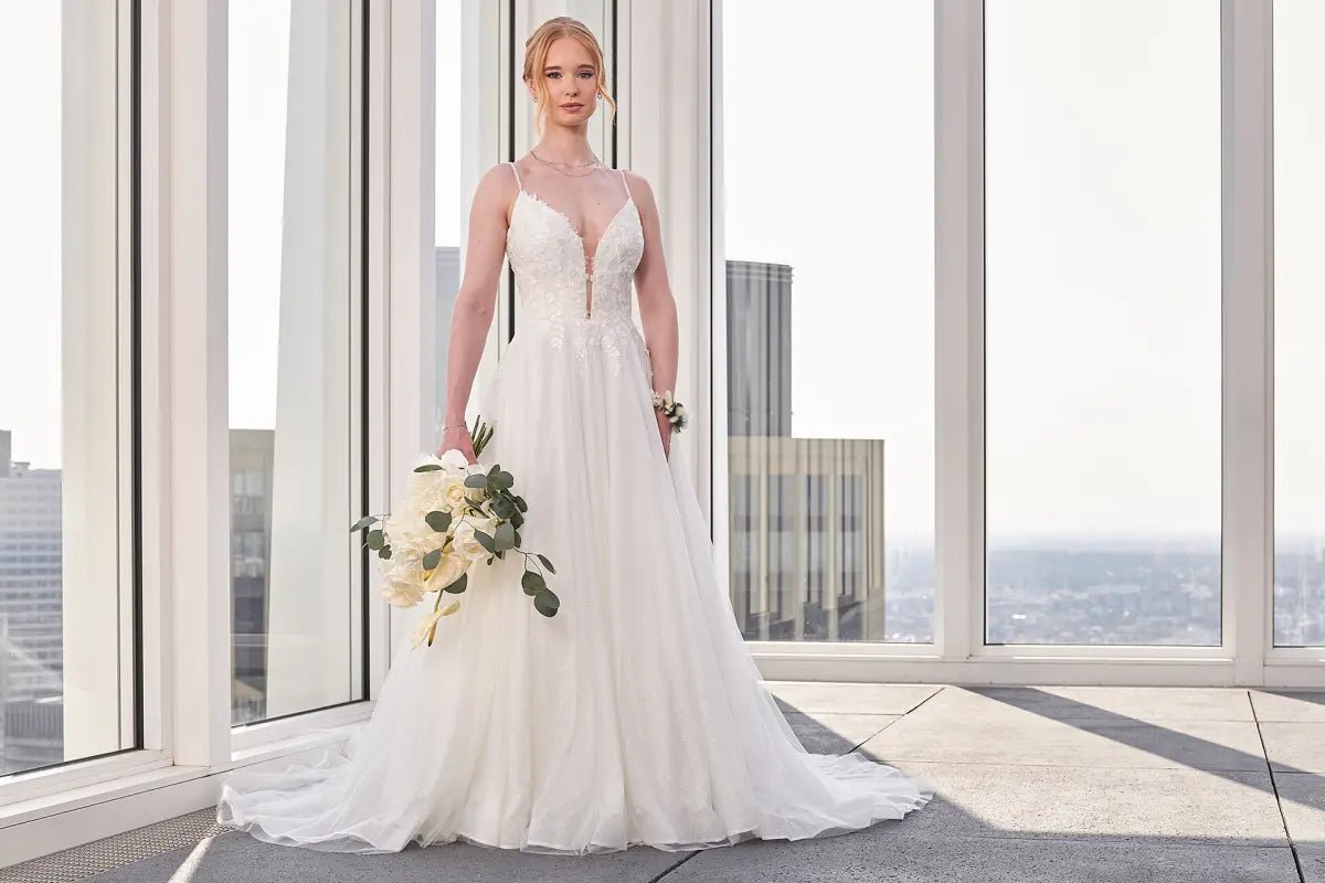 Sei eine Bridonista in diesem glamourösen und doch modernen Spark24-06 Hochzeitskleid! Mit seinem V-Ausschnitt und den Cut-Outs zeigt es gerade genug von deiner Weiblichkeit. Mit der Sparkle-Kollektion, zu der auch die Allover-Spitze und die Pailletten gehören, funkelt und schillert es. Die Spaghetti-Träger, die Prinzessinnennähte, das Brautkleid im Aschenputtel-Stil und die lange Schleppe sorgen dafür, dass du dich wie eine Königin fühlst - aber vergiss nicht die verspielten Aspekte!