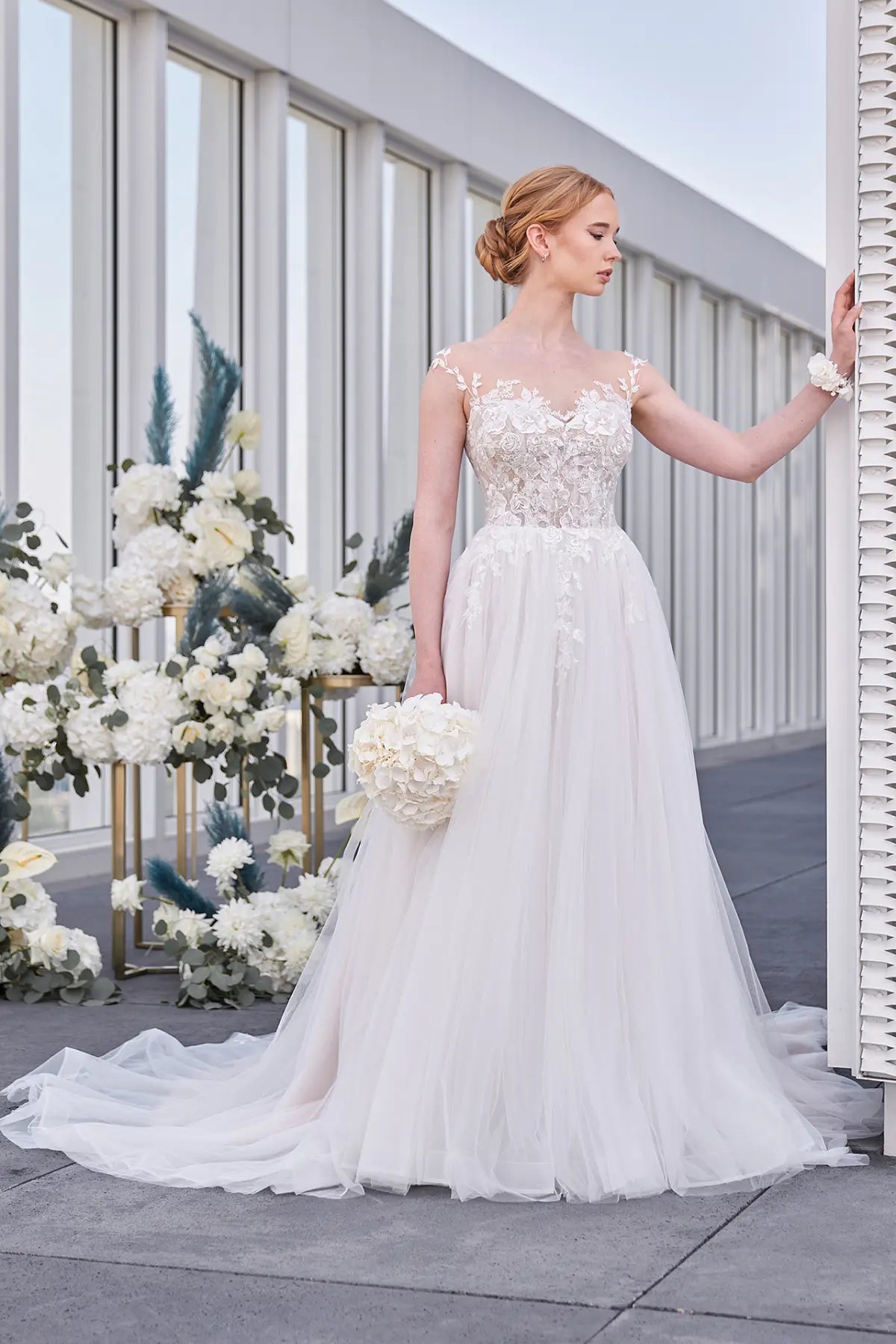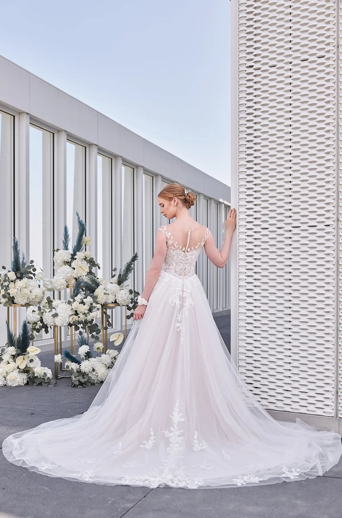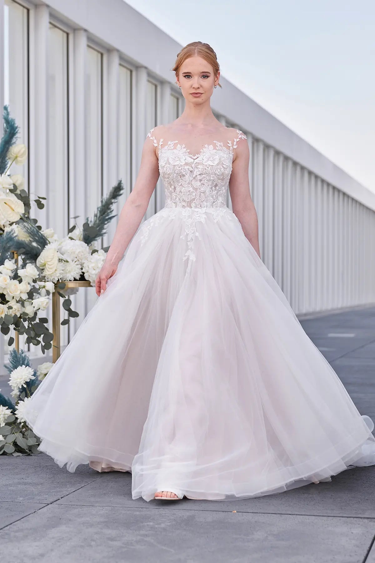 Übernehme deinen Stil in den Ballsaal mit dem Bridonista Spark24-07! Dieses Hochzeitskleid ist alles, was du brauchst, um deinem besonderen Tag einen königlichen Touch zu geben. Mit seiner verspielten Tattoo-Spitze, dem Prinzessinnenschnitt, der langen Schleppe und dem glamourösen Glitzern wirst du deine Gäste zum Staunen bringen. Ganz zu schweigen von dem klassischen Carmen-Ausschnitt, der Knopfleiste und dem Brautkleid - du wirst dich wie Aschenputtel fühlen! Lass das Spark24-07 einen Hauch von schillernder Romantik in dein Happy End bringen.