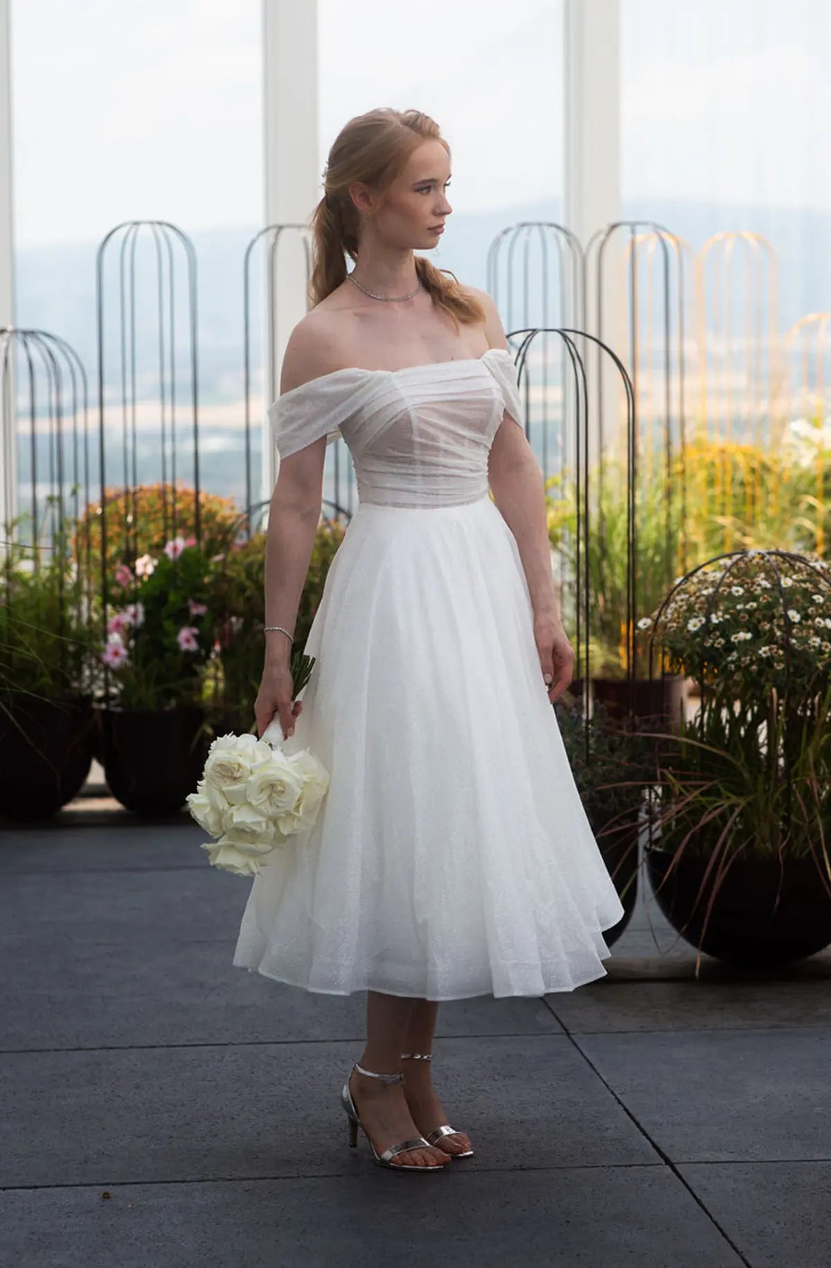 Das Bridonista Spark24-11 ist das perfekte Kleid für den Übergang vom Büro zur Party! Dieser Stunner in A-Linie hat einen geraden Ausschnitt, einen schulterfreien Schnitt und abnehmbare Träger, die dafür sorgen, dass du deinen Cinderella-Moment überall übernehmen kannst. Mit dem glitzernden Material und dem zierlichen Mantel kannst du deine verspielte Seite zeigen - so bist du für jede königliche Angelegenheit gerüstet!