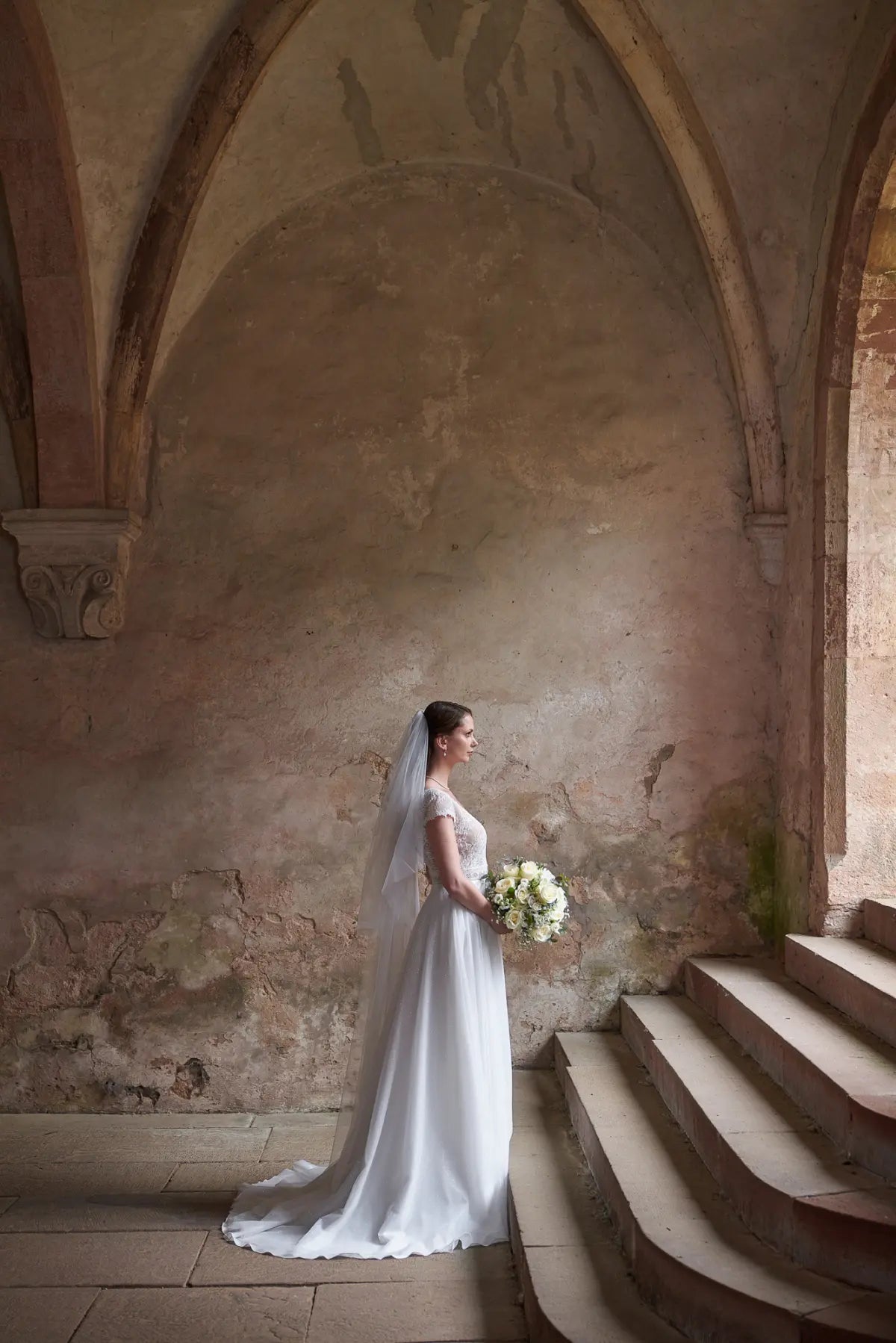 Die Corsage besticht durch ihre mädchenhafte Zartheit und kombiniert eine feine Chantilly-Spitze in floralem Design mit einem groben Spitzenband an der Taille. Dieser Kontrast wird durch eine feminine Transparenz und eine feine Wimpernborte am V-Ausschnitt betont. Chantilly-Spitze und Spitzenband unterscheiden sich zwar in der Haptik, haben aber Parallelen in den floralen Formen und ergänzen sich mühelos. Auch im Jahr 2024 setzt unsere Chefdesignerin Sarah, der kreative Kopf hinter Bridonista Designs, auf ihre Liebe zum Detail; so spiegeln sich Wimpernabschlüsse auch in den Flügelärmeln wider. Für den perfekten Sitz verfügt dieses Bridonista Design außerdem über eine starke Corsage und Push-up-Cups, damit du dich an deinem großen Tag selbstbewusst und wunderschön fühlen kannst. Ein besonderes Highlight ist der tiefe Rückenausschnitt, der das Design perfekt ausbalanciert und für viele WOW-Momente an deinem Hochzeitstag sorgen wird. Der Tüllrock lenkt nicht von der feinen Corsage ab, ist schlicht gehalten und sorgt mit einer mittellangen, aber leichten Schleppe für moderne Cinderella-Vibes.