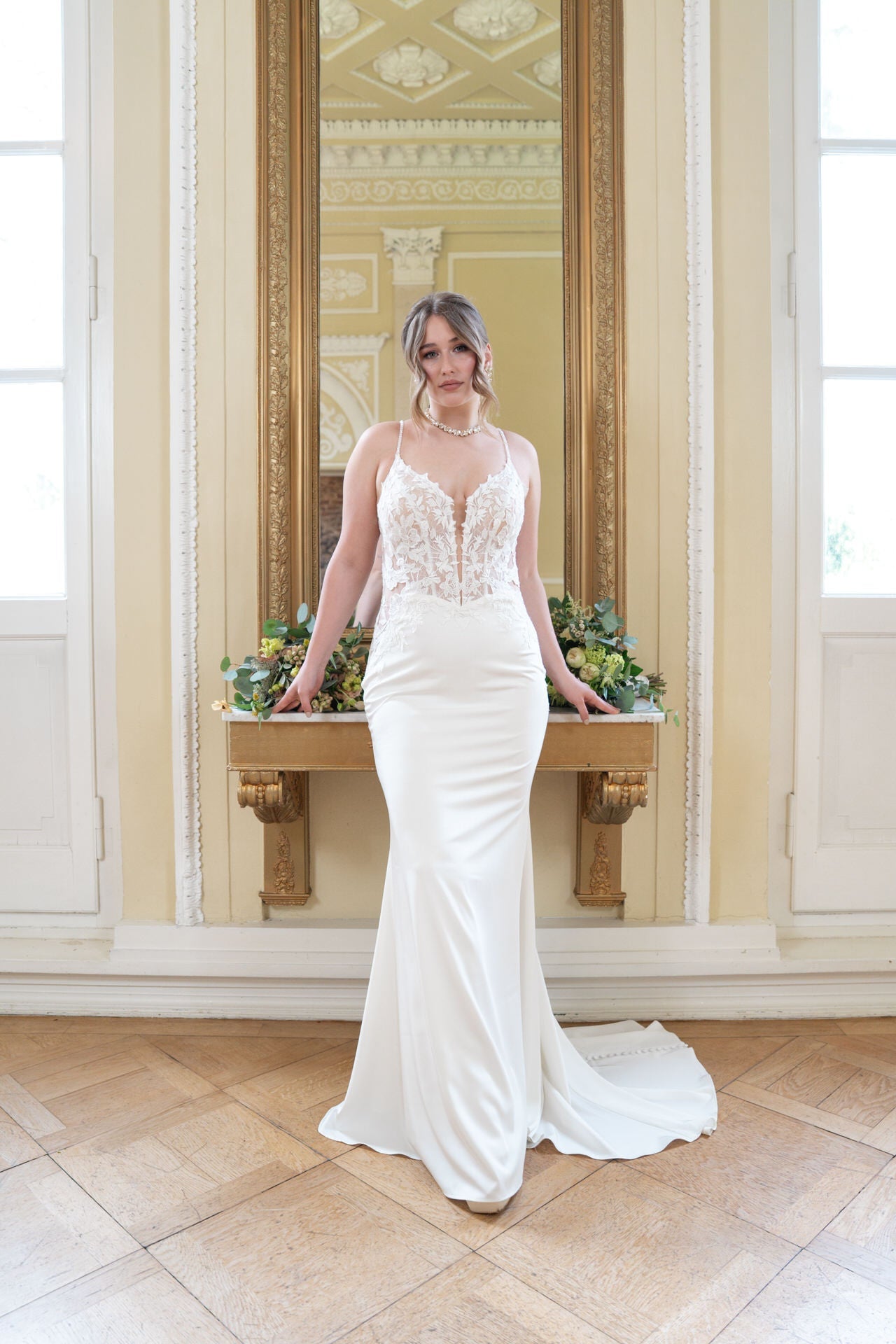 Gefertigt aus hochwertigem Crepe und verziert mit zarter Blätterspitze und kunstvoller Bestickung, umhüllt Dich das Kleid mit einer eleganten Leichtigkeit. Die zarten Spaghetti-Träger und der schmeichelhafte V-Ausschnitt setzen Dein Dekolleté perfekt in Szene und verleihen Dir eine feminine Ausstrahlung.