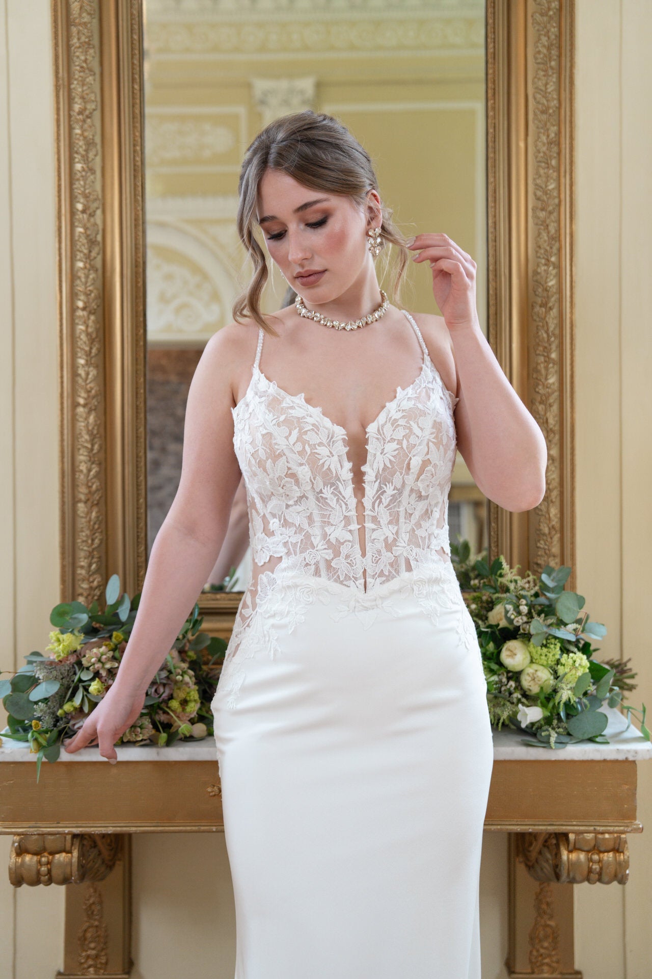 Erlebe die perfekte Verbindung von zeitloser Eleganz und moderner Sinnlichkeit mit dem Bridonista V26-F03 Hochzeitskleid – einem atemberaubenden Fit-and-Flare-Kleid, das den Boho- und Vintage-Stil mit einem verführerischen Lingerie-Look meisterhaft vereint. Dieses Kleid ist die ideale Wahl für die Braut, die an ihrem großen Tag mit Stil, Anmut und einem Hauch von Sexiness begeistern möchte.